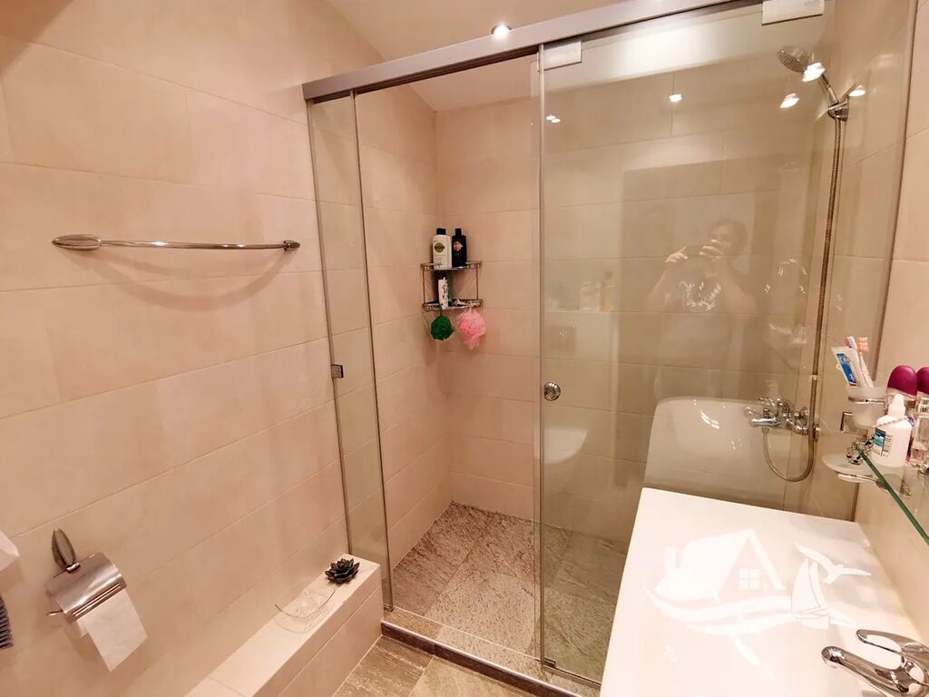 Dispozice bytu nabízí pohodlí a prostor: vstupní hala, velký obývací pokoj s kuchyňskou a jídelní částí, dvě samostatné ložnice, dvě koupelny s WC a impozantní terasa o výměře 61 m², která je přístupná ze všech místností. Z terasy se otevírá panoramatický výhled na moře, bazén a zelené vnitrobloky komplexu.