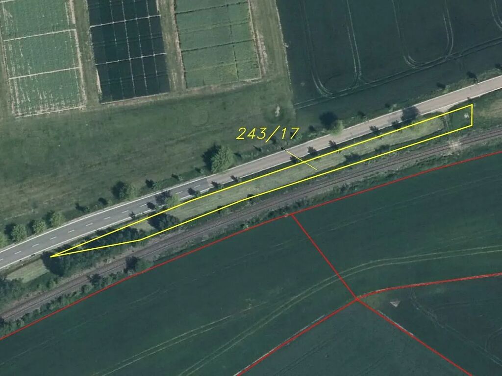 který se nachází mezi železnicí a silnicí západně od intravilánu obce. V katastru nemovitostí je