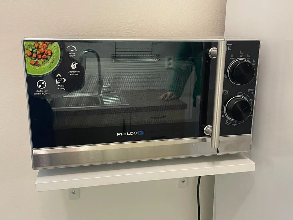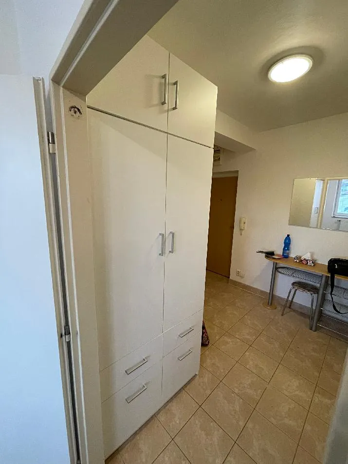 Chodba disponuje zcela novou šatní skříní. Je zde umístěn nástěnný věšák na šaty. Další vybavení viz foto je rovněž součástí pronájmu.
