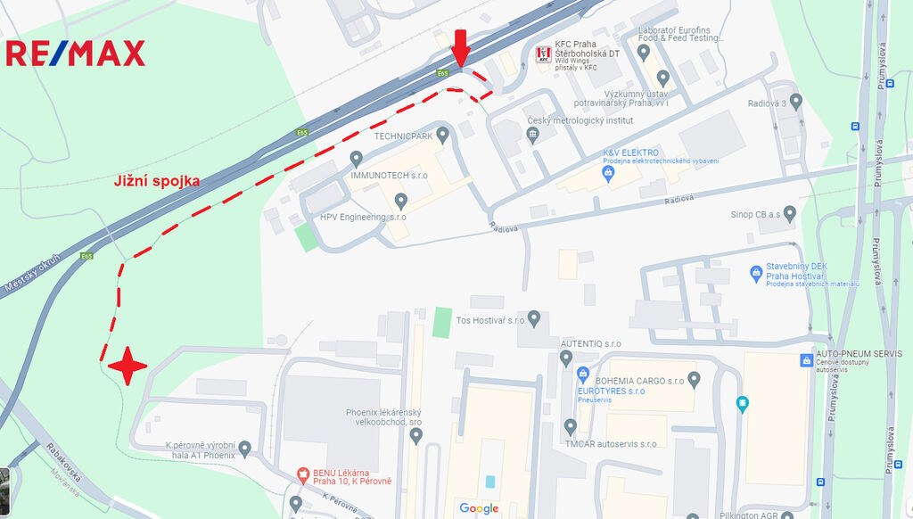 Pozemek je lichoběžníkového tvaru o rozměrech (cca 45 x 60 m) na rozhraní Hostivaře/Malešic/Štěrbohol, je rovinatý, oplocený, s posuvnou bránou, na povrchu s živičným recyklátem. Na pozemku se nachází zdroj vody s čerpadlem na naftový agregát. Elektřina bude brzy zavedena. Příjezd k pozemku po nezpevněné cestě z Jižní spojky.