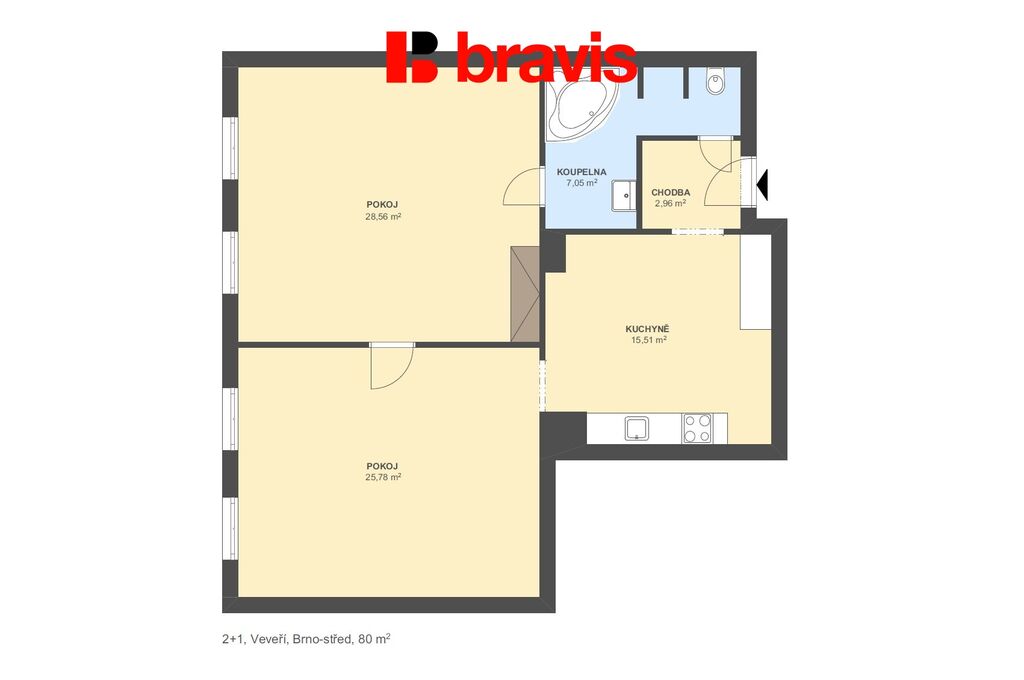 Ve výhradním zastoupení majitele nabízíme k dlouhodobému pronájmu krásný byt ve zvýšeném přízemí o velikosti 2+1 v centru města Brna na ul. Veveří. Byt o celkové ploše 80m2 se nachází ve zvýšeném přízemí secesního domu po rekonstrukci a nabízí se jako částečně zařízený.