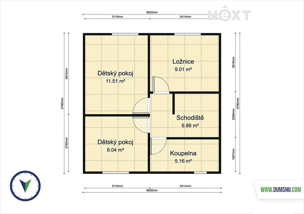 V přízemí domu se nachází prostorný obývací pokoj s moderní kuchyní, ze kterého je přímý vstup na terasu. Dále zde najdete zádveří s místem pro vestavěnou skříň, technické zázemí a koupelnu se sprchovým koutem. V patře jsou tři ložnice a druhá koupelna s vanou.