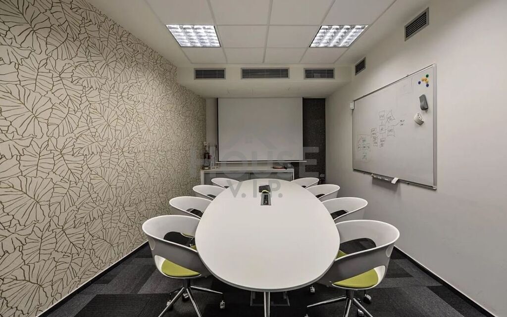 V přízemí se nachází elegantní recepce, v patře zasedací místnost a čajová kuchyňka, v suterénu pak jídelna a společenské zázemí pro zaměstnance. Interiéry jsou vybaveny zátěžovými koberci, celoskleněnými příčkami, klimatizací, žaluziemi a bezdotykovými bateriemi v sanitárních prostorech. Celý objekt doplňuje nová luxusní skleněná fasáda, která budově dodává reprezentativní vzhled a velkorysé množství světla.