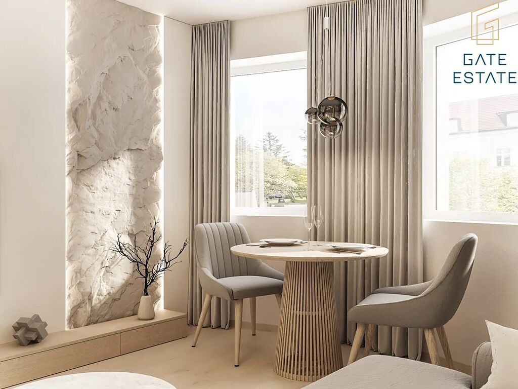 Byt se nachází v nejvyšším patře udržovaného činžovního domu a prošel kompletní rekonstrukcí, při které byl kladen důraz na kvalitu materiálů a moderní design.