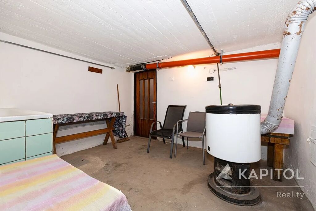Suterén: celý dům je plně podsklepený – celkem 5 místností, které lze využít jako sklad potravin, dílnu, kotelnu či úložné prostory