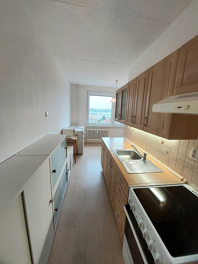 Dispozice – velká kuchyně 18 m², dva neprůchozí pokoje - obývací pokoj 17 m² a ložnice 13m² se vstupem na balkon 4 m² s krásným výhledem, prostorná předsíň, koupelna se sprchovým koutem společně s WC, k dispozici sklep.