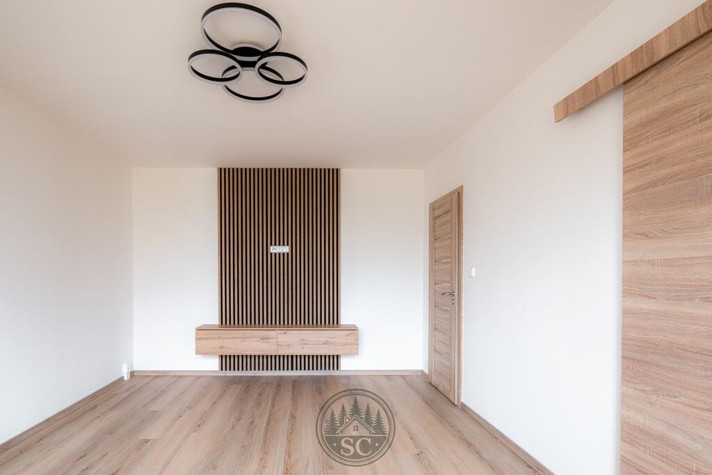 V celém bytě proběhla kompletní nivelace podlah a byl položen kvalitní vinyl, který sjednocuje celý prostor. Samozřejmostí jsou nové dveře a nové rozvody elektřiny a vody.