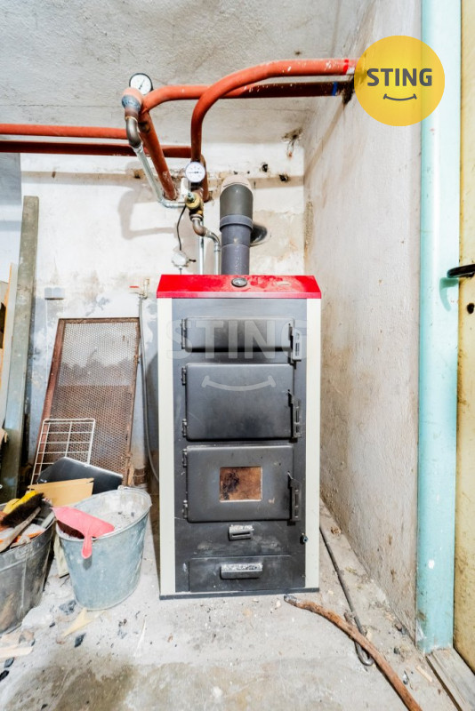 Dům je vytápěn kotlem na tuhá paliva s rozvody do ústředního topení.