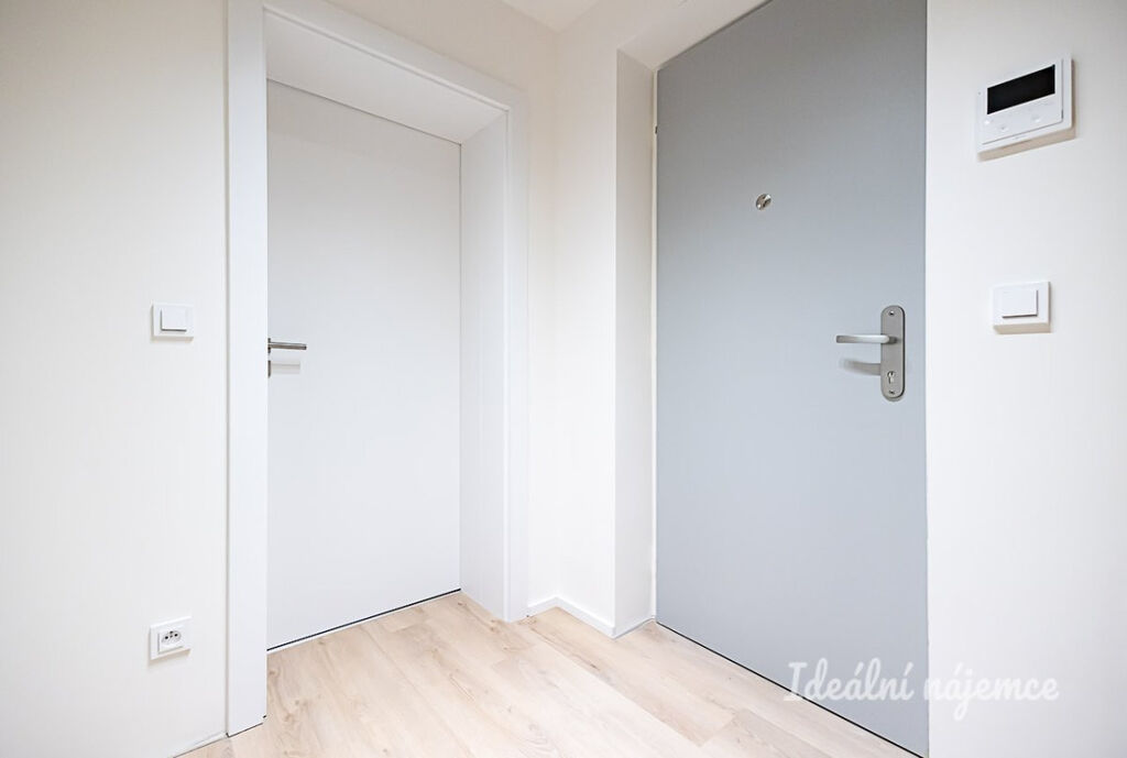 Byt je částečně vybavený, což dává novému nájemníkovi možnost doladit interiér podle vlastního vkusu. Kuchyňský kout je vybaven elektrickou a mikrovlnnou troubou, indukční varnou deskou, lednicí, digestoří, myčkou a posezením. Obytná část nabízí pohodlný gauč, konferenční stolek, přímý vstup na balkon a úložné prostory. Koupelna je zařízena sprchovým koutem, umyvadlem a toaletou. V bytě se také nachází komora s pračkou.