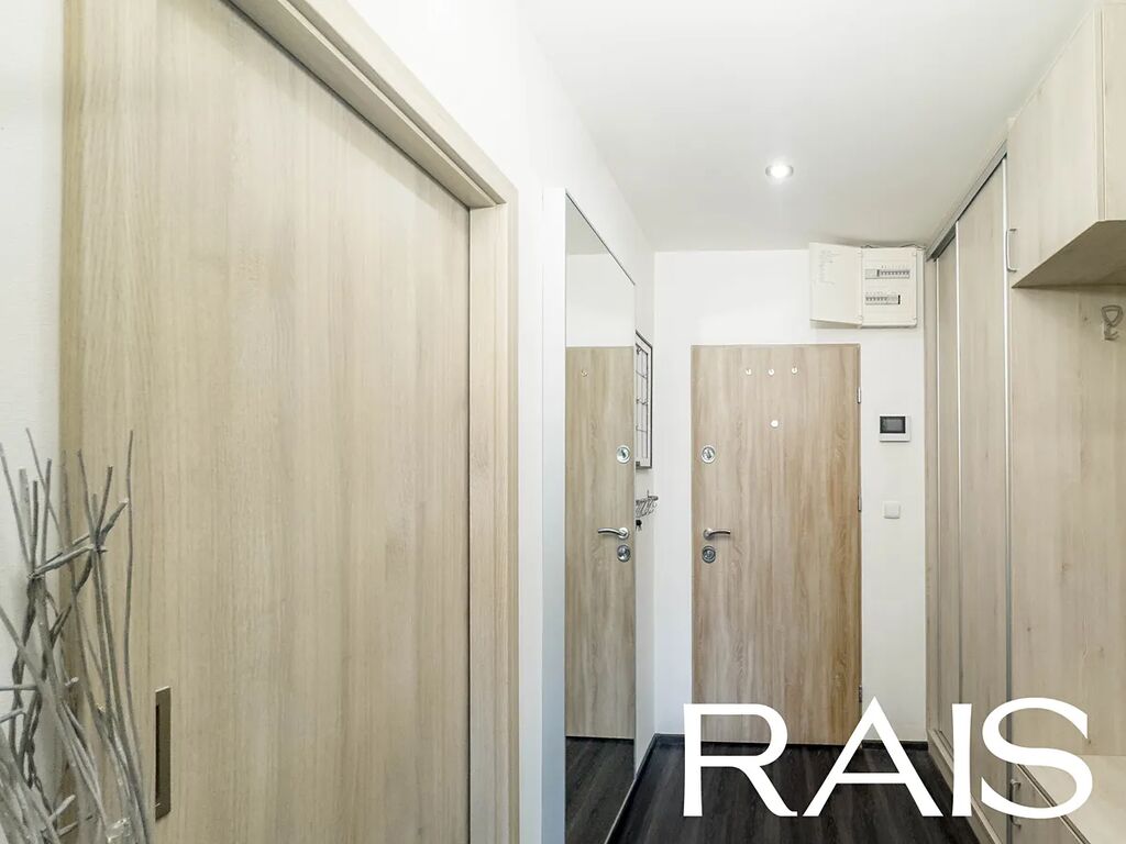 Byt je situován v kompletně revitalizovaném panelovém domě, který prošel důkladnou modernizací zahrnující zateplení fasády, výměnu výtahu, instalaci nových poštovních schránek a zasklení lodžií, což výrazně přispívá k estetice i energetické efektivitě budovy. Vstupní chodba vás přivítá příjemným prostorem s bezpečnostními dveřmi a vestavěnými skříněmi, které elegantně řeší úložné potřeby domácnosti. Na chodbu navazuje praktická šatna, samostatné WC s umyvadlem a prostorná koupelna, vybavená rohovou vanou, pračkou a zasouvacími pojízdnými dveřmi, které umožňují maximální využití prostoru.