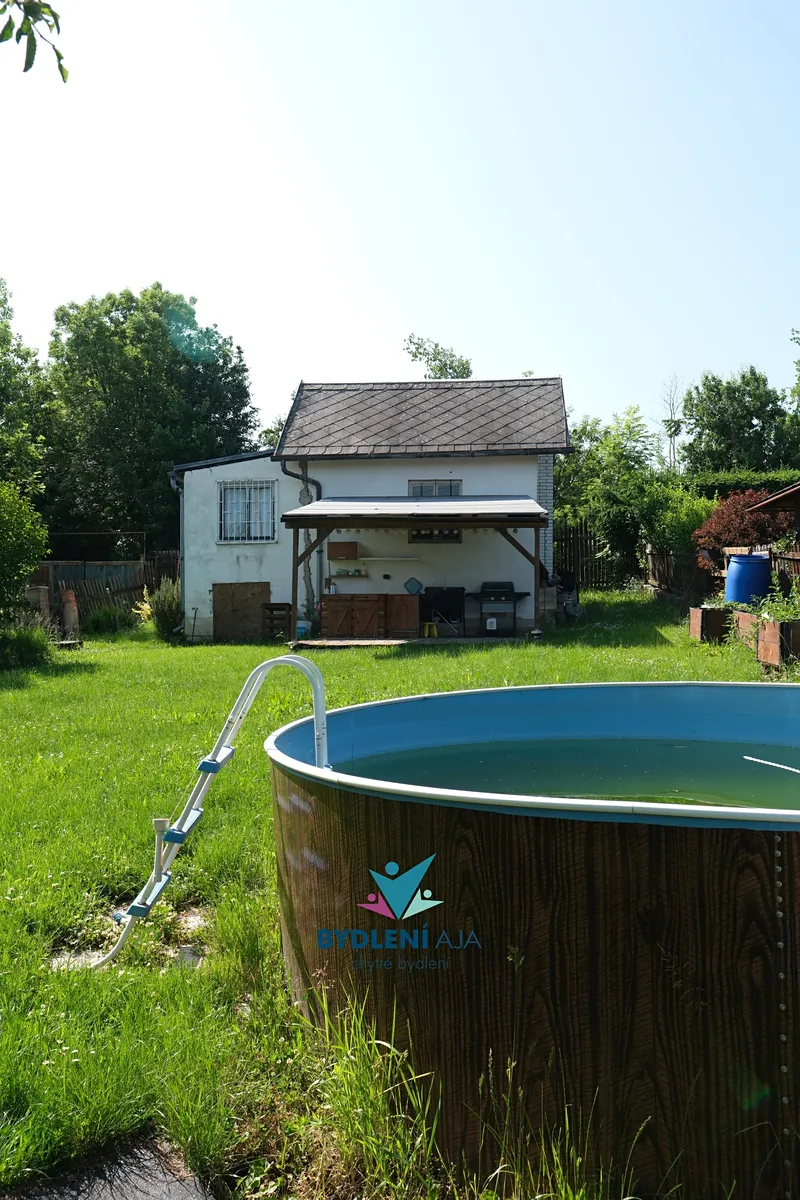 Na udržované zahradě je kromě ovocných stromů, záhonků a květin také bazén pro letní osvěžení a velká zastřešená pergola s výhledem do zeleně. Pergola je vybavena venkovní kuchyní s myčkou nádobí a grilem – ideální pro pohodové chvíle s rodinou nebo přáteli.