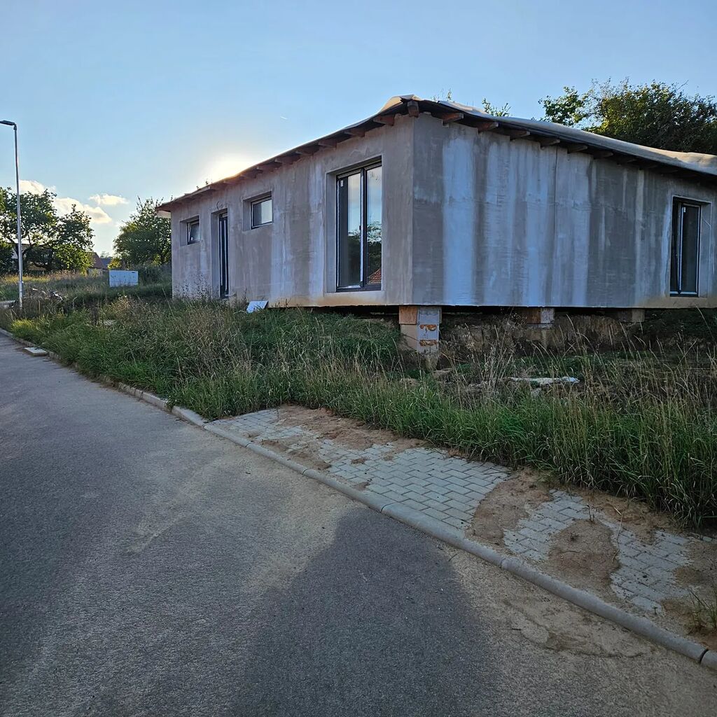 Prodej stavebního pozemku o výměře 620 m2 s vydaným stavebním povolením se stavbou nedokončeného bungalovu o dispozici 3+kk, ca 83 m2 užitné plochy.