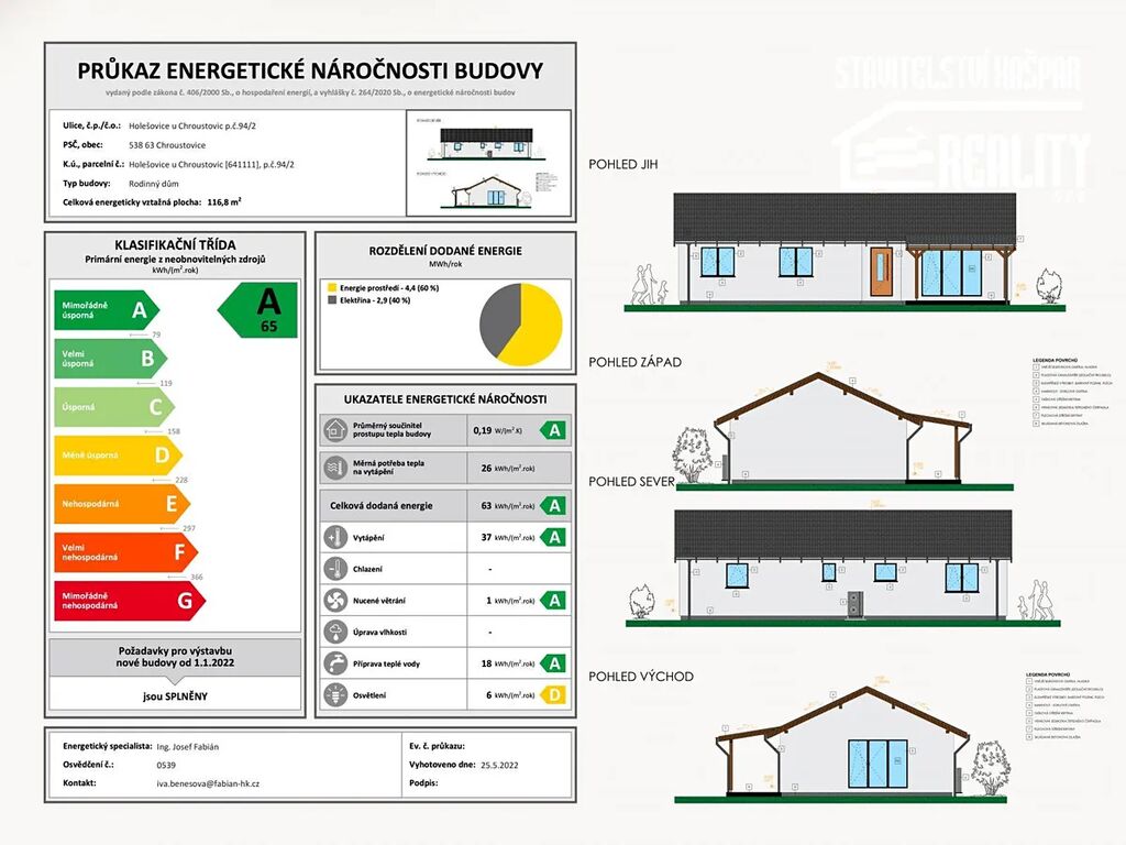 Jmenuji se Michal Müller a jsem obchodní zástupce společnosti Stavitelství Kašpar s.r.o. Rád bych vám představil exkluzivní nabídku novostavby rodinného domu v obci Holešovice, okres Chrudim. Jedná se o moderní a energeticky mimořádně úsporný rodinný dům o dispozici 4+kk s užitnou plochou 95,8 m2 s  pozemkem o rozloze 862 m2. Tento dům je ideálním spojením komfortního bydlení, úspornosti a klidné lokality.