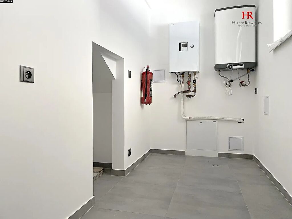 Nabízíme ke koupi byt o dispozici 5kk se zahradou, terasou a parkovacím stáním v žádané lokalitě, Chrást nad Sázavou, část obce Týnec nad Sázavou, okr. Benešov. Byt se nachází v řadovém domě (viz plánek – RD6) se samostatným číslem popisným, postaveném na obdélníkovém pozemku o celkové výměře 134 m2. Zastavěná plocha domem cca 65 m2. Užitná plocha domu cca 110 m2, zahrada za domem cca 42 m2 (z toho dlážděná terasa cca 12 m2), dále pozemek se dvěma parkovacími stáními před domem. Vlastnictví osobní. Řadový dům, ve kterém se byt nachází je patrový a není podsklepený. Příjezdová komunikace – dlážděná (obecní). IS – obecní vodovod, elektřina 230 V/400 V (25 A), spádová kanalizace, optický, telekomunikační kabel - internet. Topení – podlahové vytápění, tepelné čerpadlo vzduch - voda, v podkrovní místnosti je tepelné čerpadlo vzduch - vzduch sloužící k topení i jako klimatizace. Ohřev vody je zajištěn dvěma bojlery (pro každé patro samostatně). Podlahy – dlažba, plovoucí podlaha (lamino). Interiérové dveře s obložkou. Okna – plastová (trojsklo), střešní okna dřevěná (trojsklo), v koupelně střešní okno plastové. Střecha – sedlová, střešní krytina plechová, zateplená (25 cm vata + PUR pěna). Schodiště do patra – beton, povrchová úprava dřevo, schodiště do podkrovní místnosti dřevěné. Dům je dvoupodlažní + podkrovní místnost. Obvodové zdivo Ytong 25 cm + zateplení šedým polystyrenem 14 cm. Dispozice bytu (řadového domu) 5kk. Přízemí – předsíň 5,4 m2, obývací pokoj s kuchyňským koutem 20,8 m2, technická místnost 6,8 m2, wc s umyvadlem 1,4 m2. 1. patro – hala 7,1 m2, schodiště 3,1 m2, ložnice 10,9 m2, pokoj I. 10,0 m2, pokoj II. 14,1 m2, koupelna s wc 8,1 m2. Podkrovní místnost 28 m2. V bytě jsou vyhotoveny rozvody TV, internetového signálu, v každé místnosti termostat na řízení teploty. Na pozemku před domem (tedy u vstupu) se nachází vydlážděný, částečně zastřešený prostor s možností parkování 2 automobilů. Na oplocené zahradě se nachází terasa a travní plocha, dále pak podzemní nádrž na dešťovou vodu (5 m3). Jedná se o velice hezké, klidné místo v blízkosti přírody a řeky Sázavy. Nedaleko bytu naleznete tenisové kurty, restauraci, prodejnu potravin, MŠ, poštu. ZŠ se nachází v Krhanicích vzdálených 1,5 km. Veškerá občanská vybavenost v 5 km vzdáleném Týnci nad Sázavou. Dobré spojení do Prahy, zastávka bus – PID, nebo vlak (vlaková zastávka Krhanice). Vzdálenost do Benešova je cca 10 km a do Prahy cca 30 km. PENB – třída B – velmi úsporná. Nemovitost je již zkolaudována, k nastěhování ihned. Nemovitost se prodává bez vybavení nábytkem. Ve fotodokumentaci u nabídky jsou použity i vizualizační fotky. Možnost odpočtu DPH, možnost koupě zděné garáže (25 m2) nacházející se v blízkosti bytu. V případě zájmu Vám zprostředkujeme sjednání hypotéky.