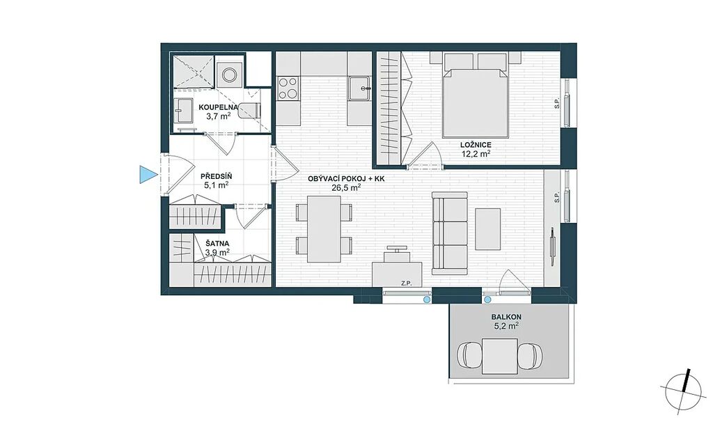 Celková cena bytu vč. GS, sklepní koje a zařízení: 9.190 tis,-Kč.