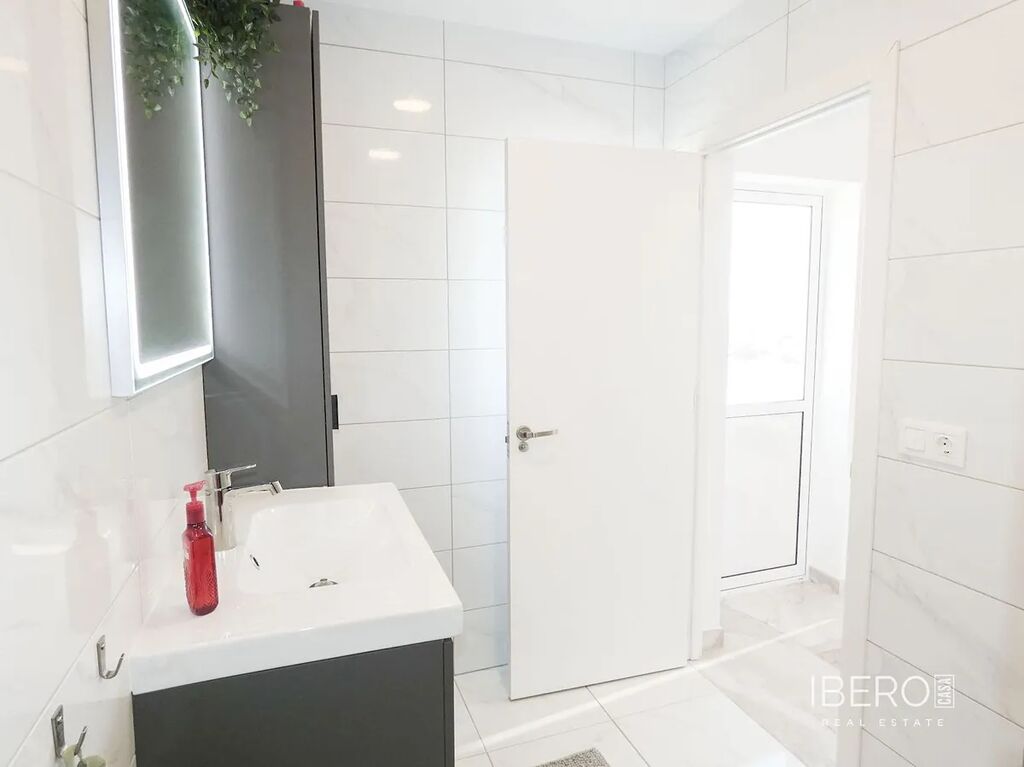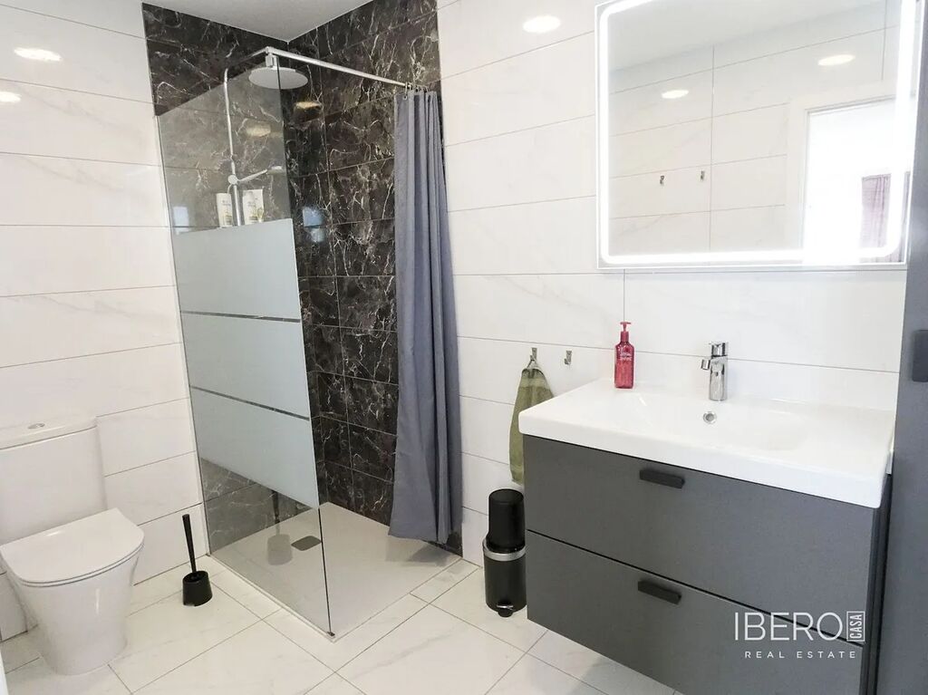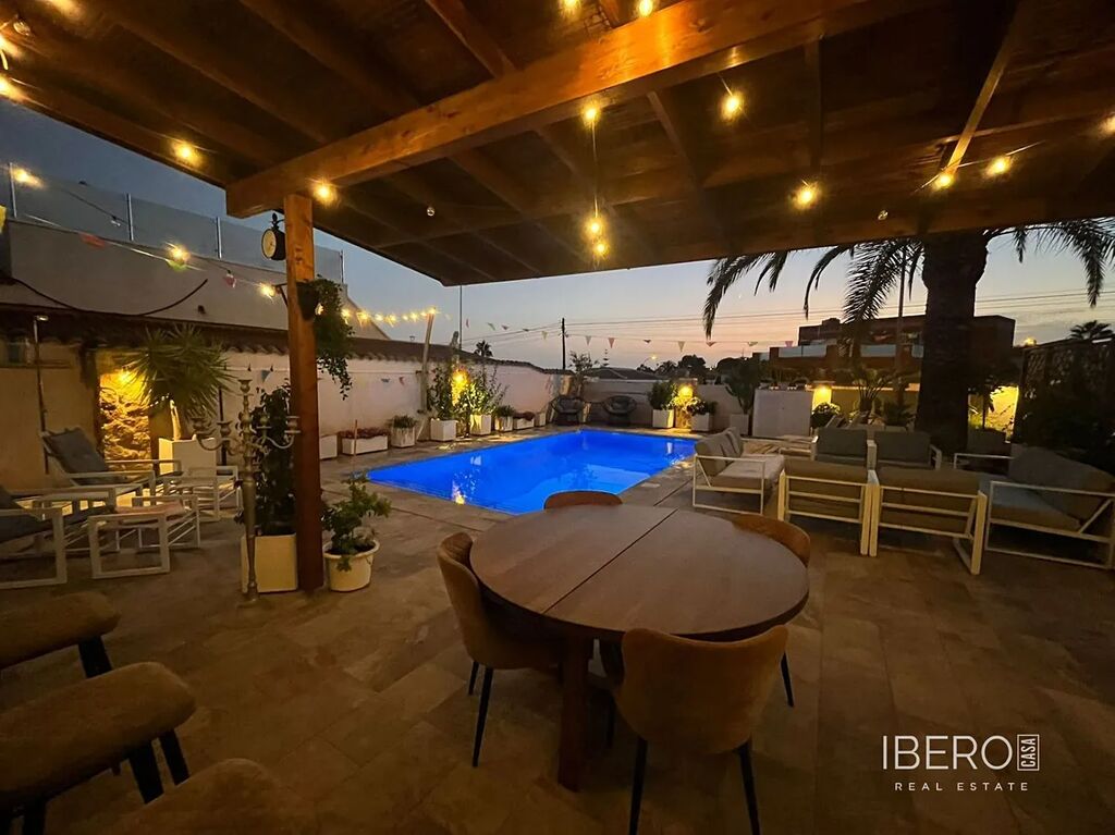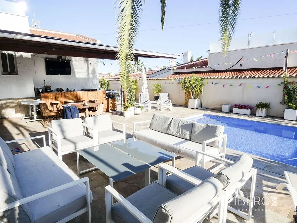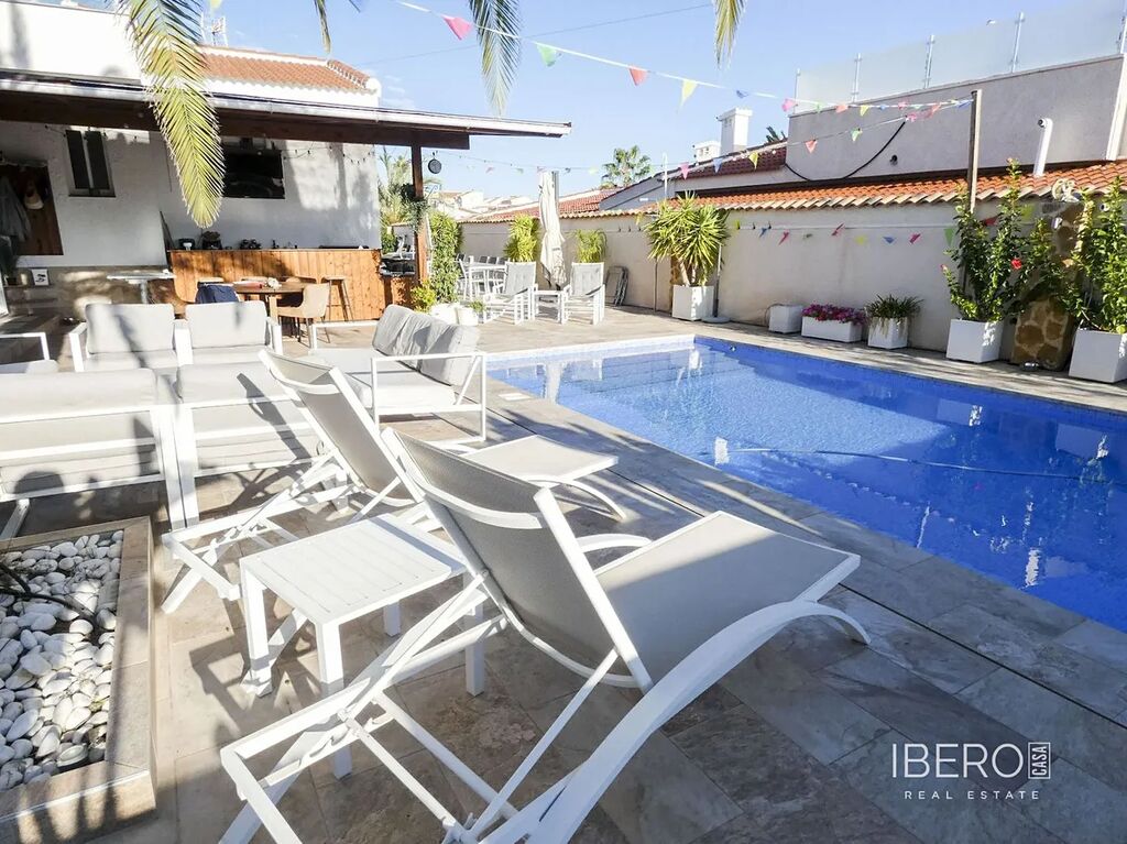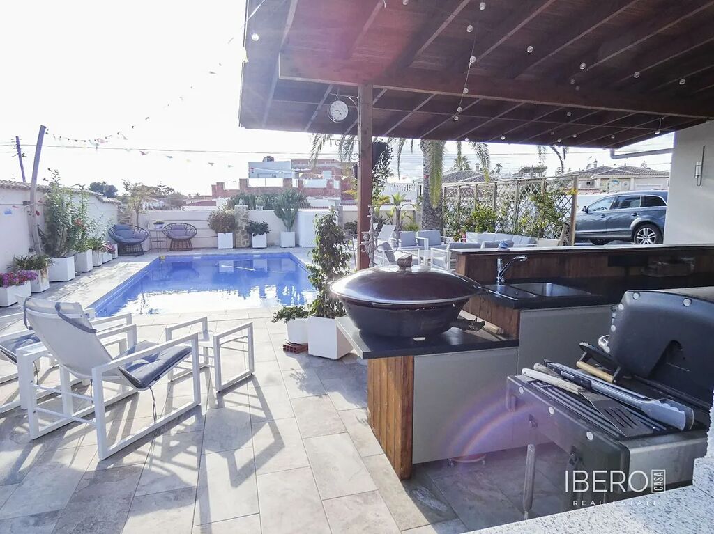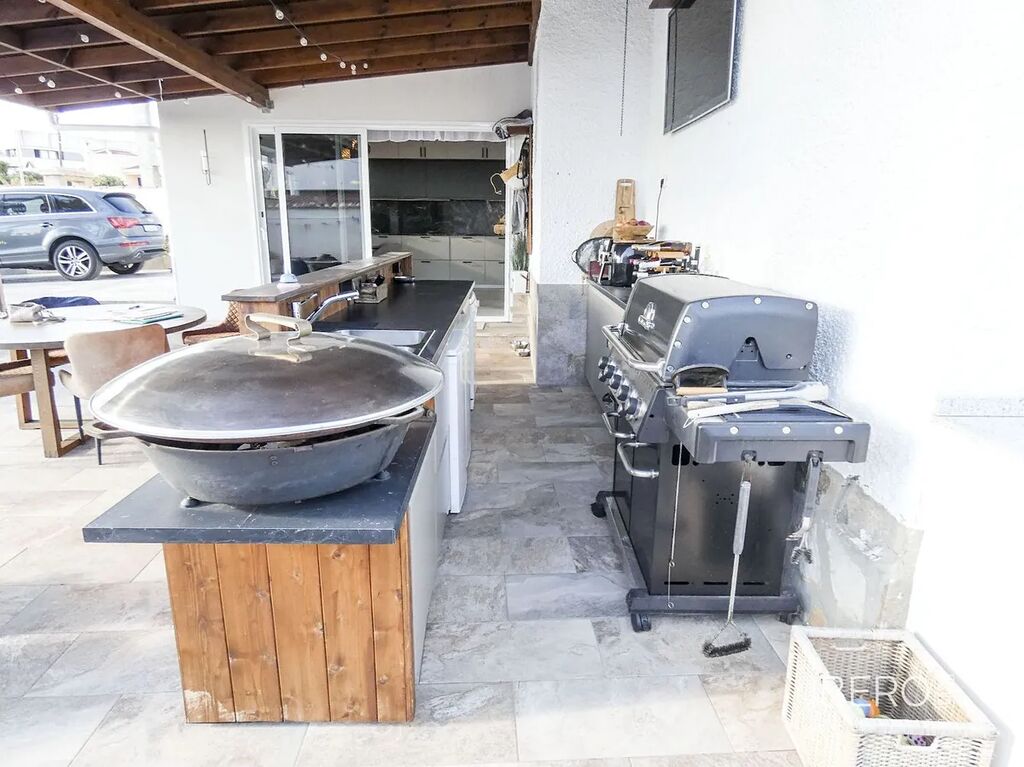 Velký bazén se slanou vodou vás zavede k venkovní kuchyni (s lednicí/mrazničkou a myčkou) a baru, stejně jako k prostorným plochám pro jídelní nábytek, odpočinkové části a lehátkům. Dům se dále otevírá prostornou a moderní kuchyní, televizní místností, velkou koupelnou se sprchovým koutem a čtyřmi ložnicemi, včetně hlavní ložnice se šatnou a vlastní koupelnou se sprchovým koutem. V koupelně a kuchyni je podlahové vytápění.