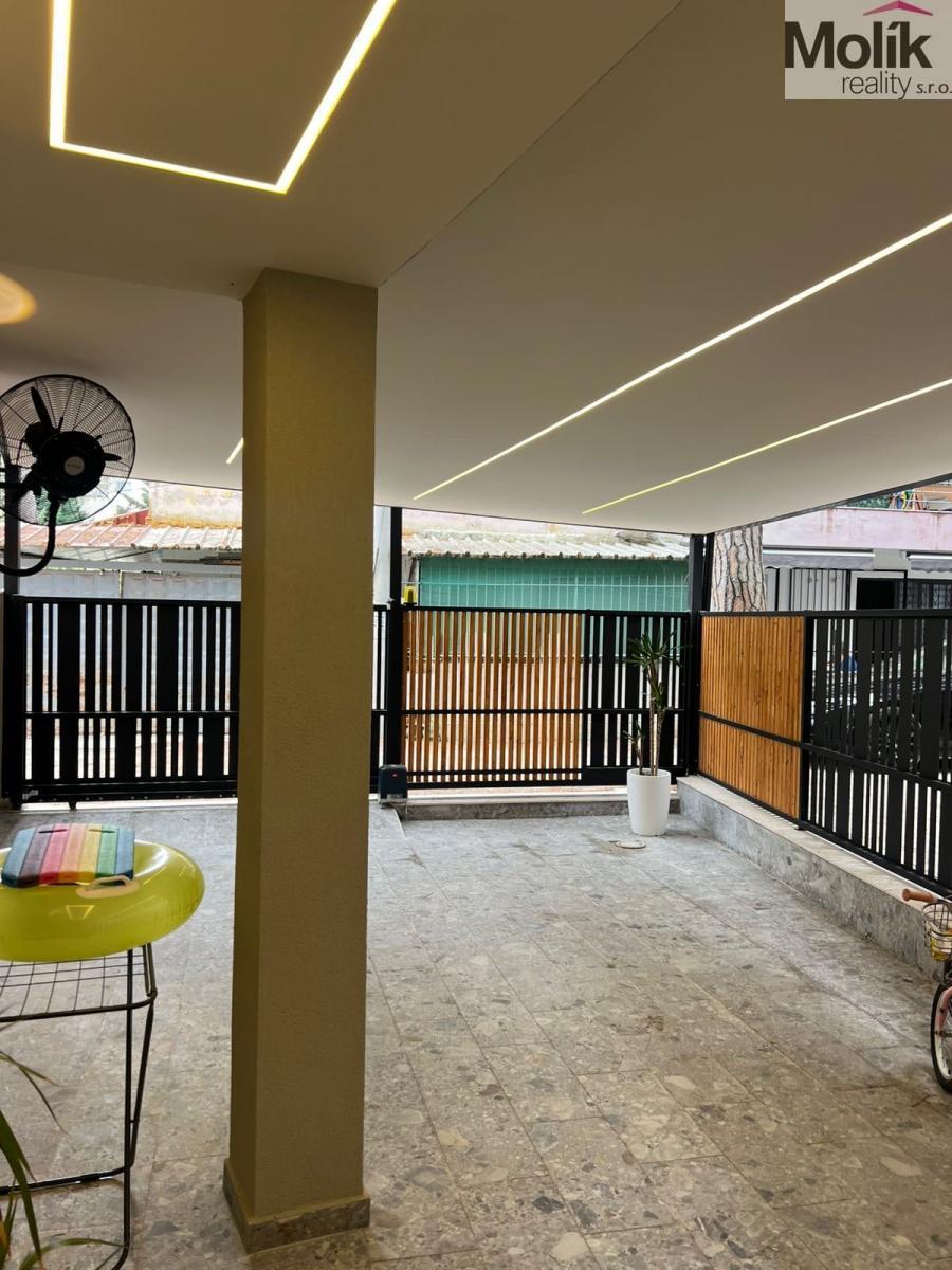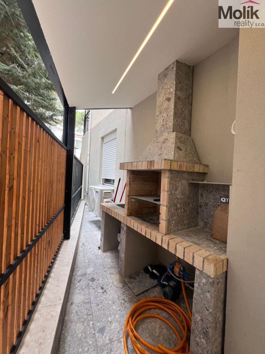 Exteriér / veranda: prostorná terasa s venkovním grilem a pracovní plochou z kamene  ideální pro letní večery. Součástí je i připojení na vodu a dostatek úložného prostoru.