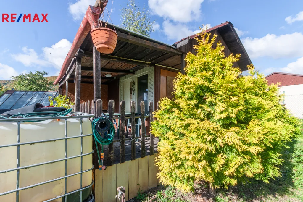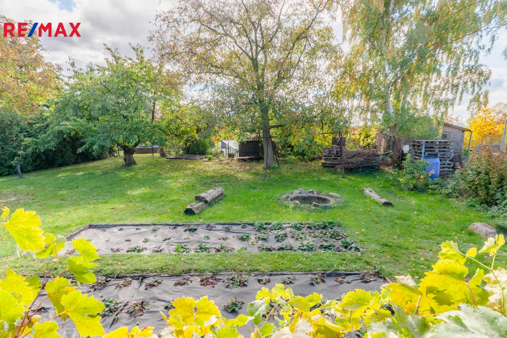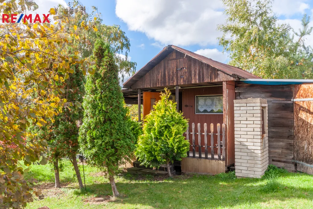 Součástí pozemku je zahradní domek se zastavěnou plochou 39m2 , dále je k dispozici přípojka elektřiny a vody. Příjezd k pozemku je po travnaté cestě ve vlastnictví města, parkování možné přímo na zahradě nebo před ní.
