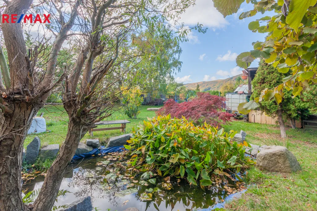 Zahrada poskytne ideální zázemí pro rekreaci, pěstování i rodinný odpočinek, nabízí klidovou zónu u jezírka i dostatek místa pro dětské hry, záhony pro pěstování zeleniny a vzrostlé stromy, které v letních měsících poskytují příjemný stín. Je to skvělá investice do rodinného štěstí, čerstvý vzduch a hezký výhled do zeleně Vás odpoutá od každodenních životních starostí.