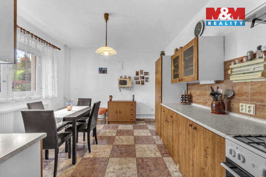 Nabízíme k prodeji 3/4 podíl na zděném rodinném domě se dvěma bytovými jednotkami, které disponují vlastními vstupy. Nemovitost se nachází v části obce Mladějov zvané Střeleč. Jedné z nejvyhledávanějších lokalit Českého ráje. Celková užitná plocha domu činí 195 m². Dům má sedlovou střechu s pálenou taškou, plastová okna v dekoru dřeva a je v dobrém technickém stavu. Každá bytová jednotka má vlastní vstup, což nabízí ideální podmínky pro dvougenerační bydlení nebo investici. Vytápění zajišťuje automatický kotel na tuhá paliva se zásobníkem napojený na radiátory. Je možné využít i krbová kamna pro pocitově jiné teplo. Objekt je napojen na veřejný vodovod, zároveň disponuje vlastní studnou na užitkovou vodu. Odpady jsou svedeny do septiku. Součástí nemovitosti je také stodola, garáž pro jeden automobil, dílna a sklep. Střeleč se nachází v samém srdci Českého ráje, v dojezdové blízkosti nejznámějších turistických cílů jako Prachovské skály, hrad Kost, zřícenina hradu Trosky nebo Humprecht.