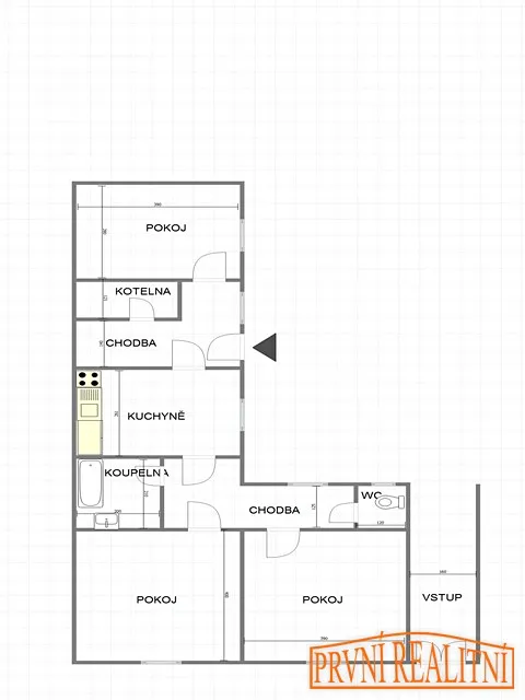 - chodba, kuchyně, 3 pokoje, spíž, koupelna a WC