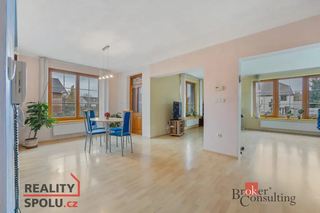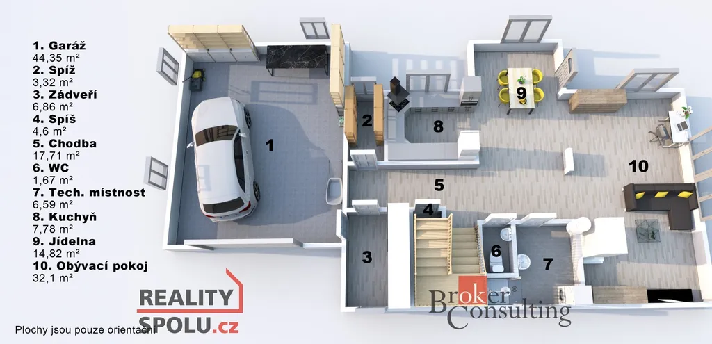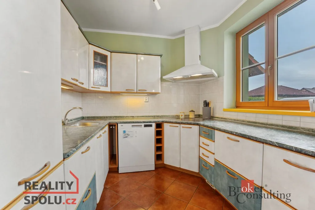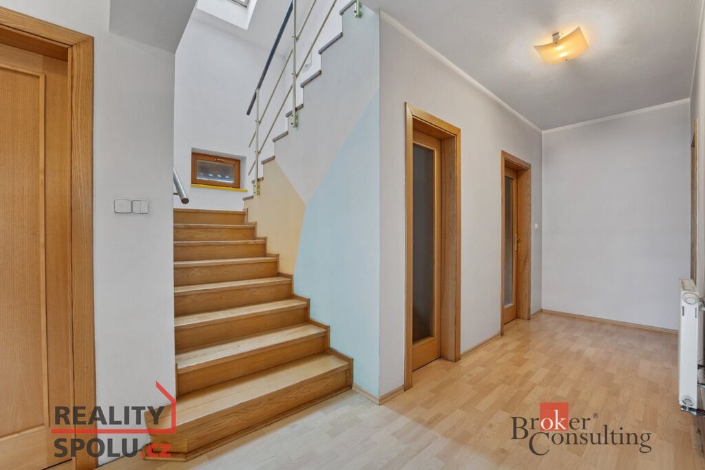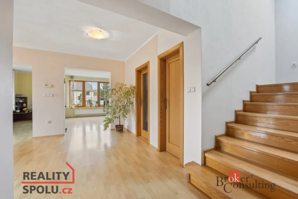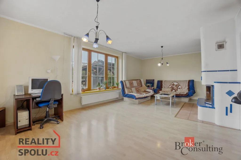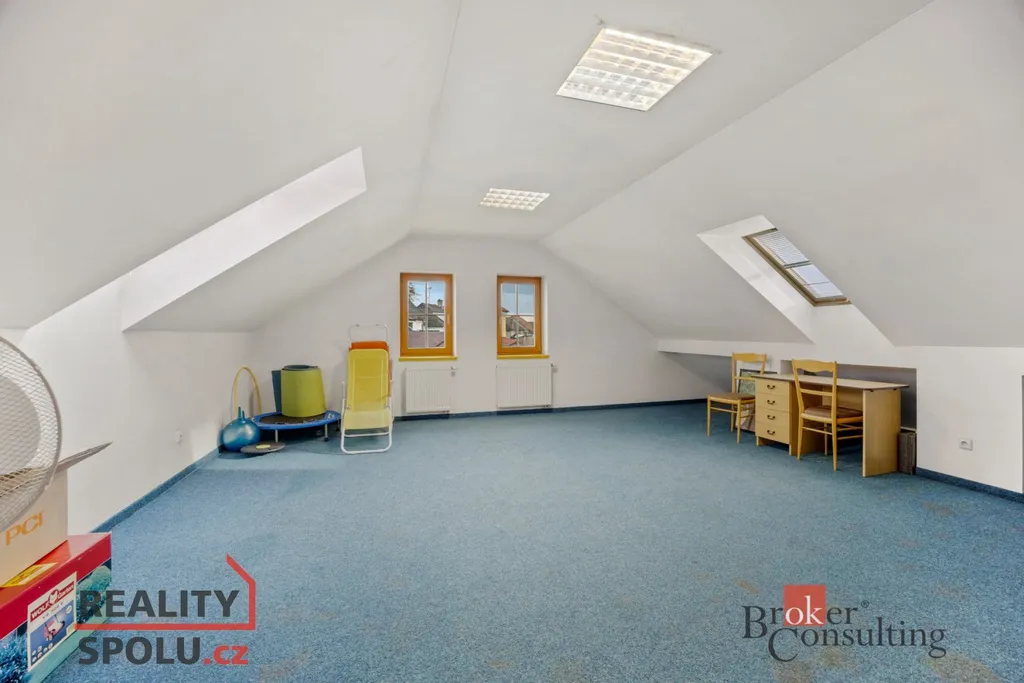 Součástí přízemí je také vytápěná dvojgaráž, nad kterou se nachází multifunkční místnost – ideální pro tělocvičnu, hernu, ateliér nebo pokoj pro hosty.