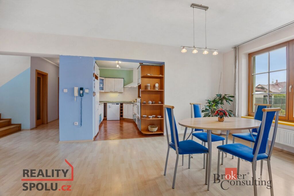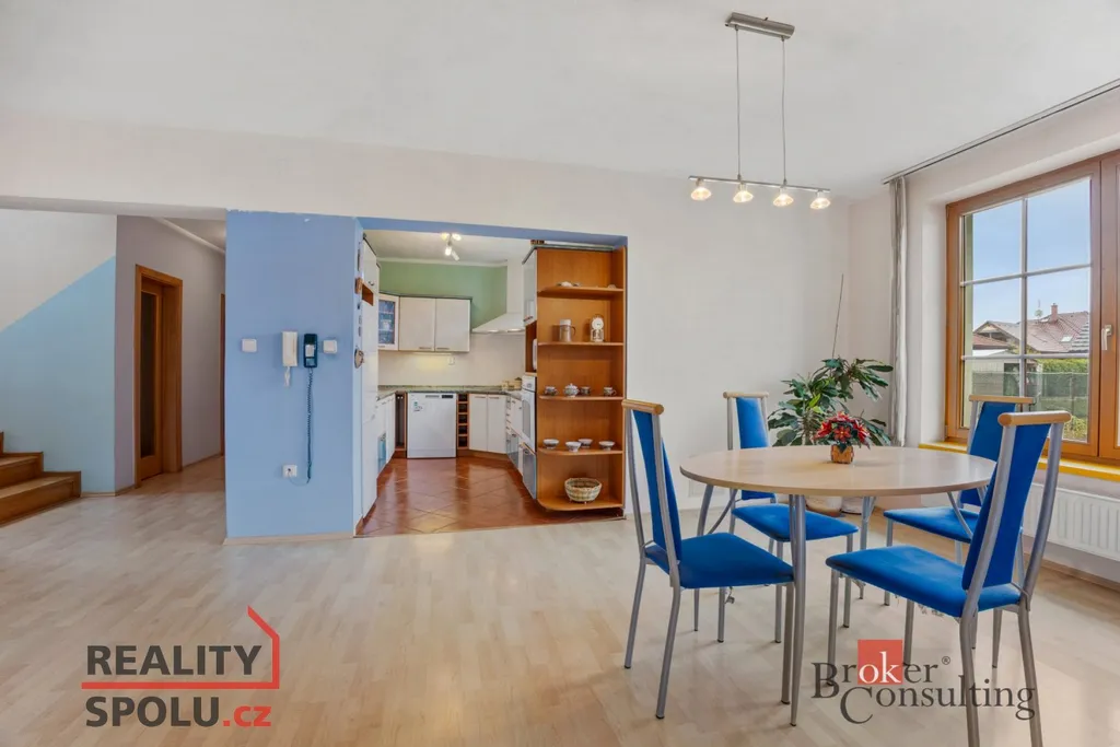 V přízemí domu se rozprostírá velkorysý obývací prostor s jídelnou a kuchyní – srdce celého domova, které nabízí dostatek světla i místa pro společné chvíle s rodinou a přáteli.