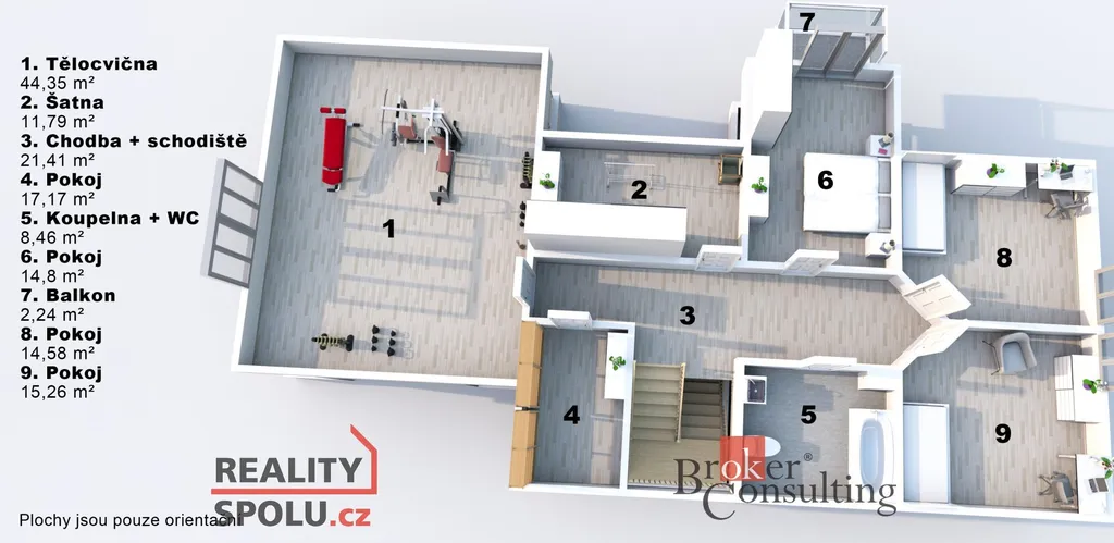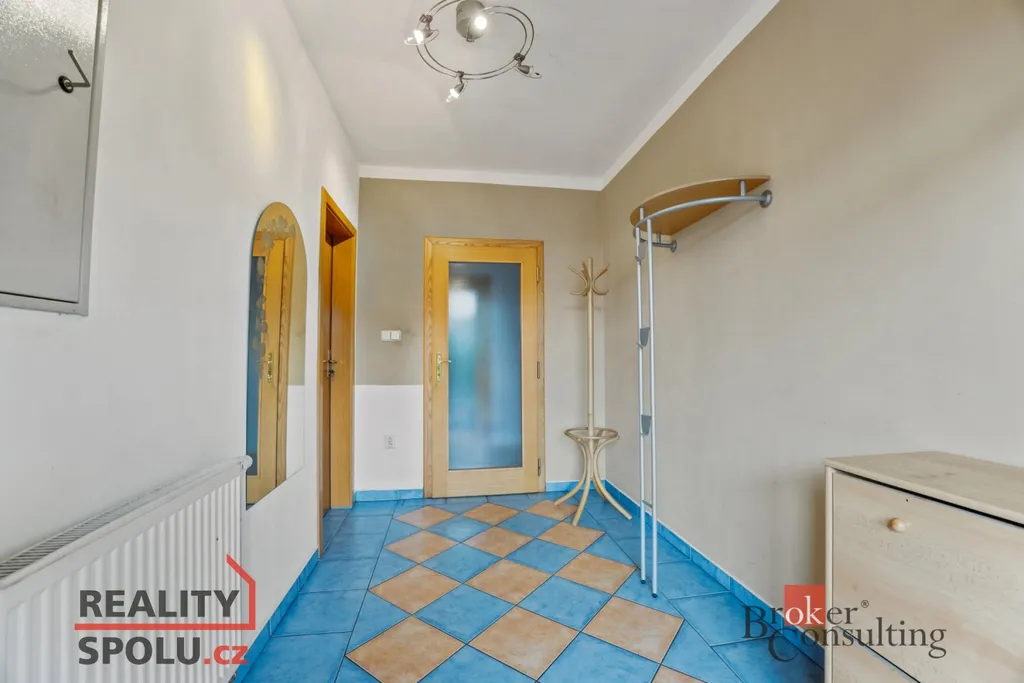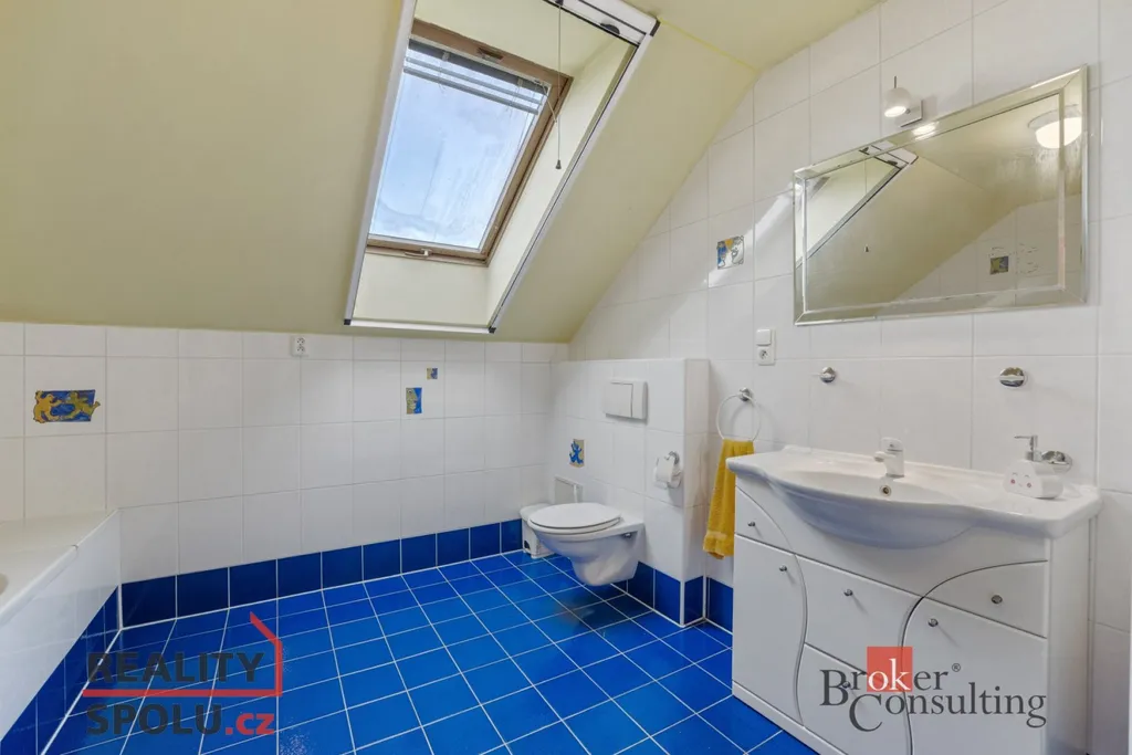 Dále zde najdete dvě komory, technickou místnost se sprchovým koutem a samostatným vstupem zvenku, toaletu a centrální vysavač.