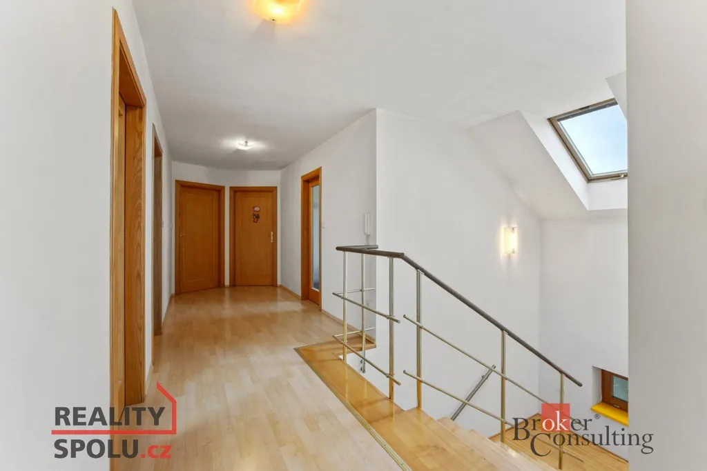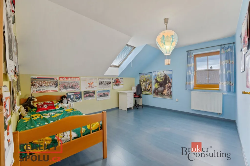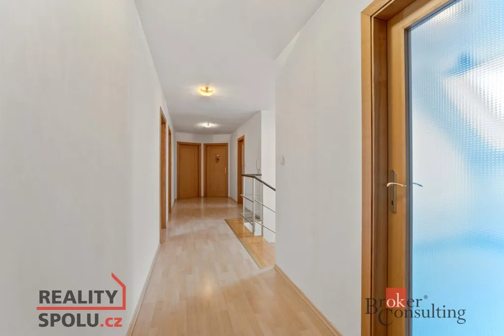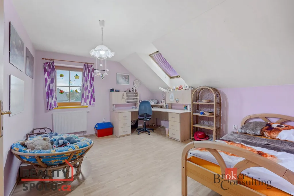 V patře se nachází dvě dětské ložnice, hlavní ložnice, prostorná šatna, pracovna a koupelna s toaletou. Celé patro je koncipováno tak, aby poskytovalo maximální soukromí a pohodlí každému členovi rodiny.