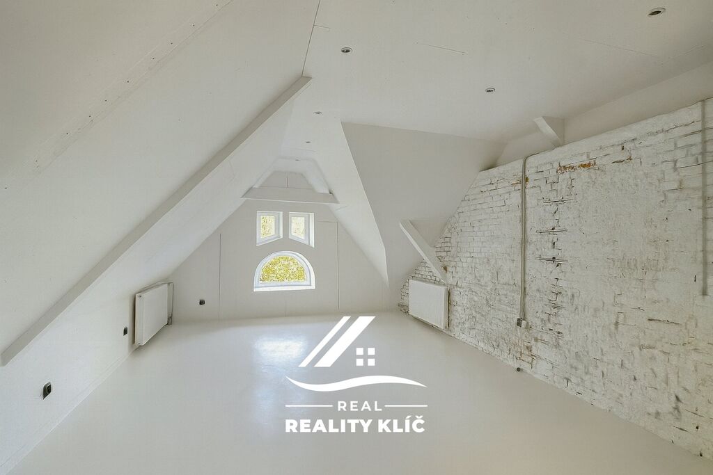 Nachází se v posledním patře zrekonstruovaného cihlového domu a zaujme svou světlostí, otevřeným prostorem a jedinečnou atmosférou. Interiér kombinuje moderní minimalistický styl s původními prvky podkroví – dřevěné trámy, bílé cihlové zdi a vysoké stropy vytvářejí vzdušné a příjemné prostředí s nádechem industriálního stylu.