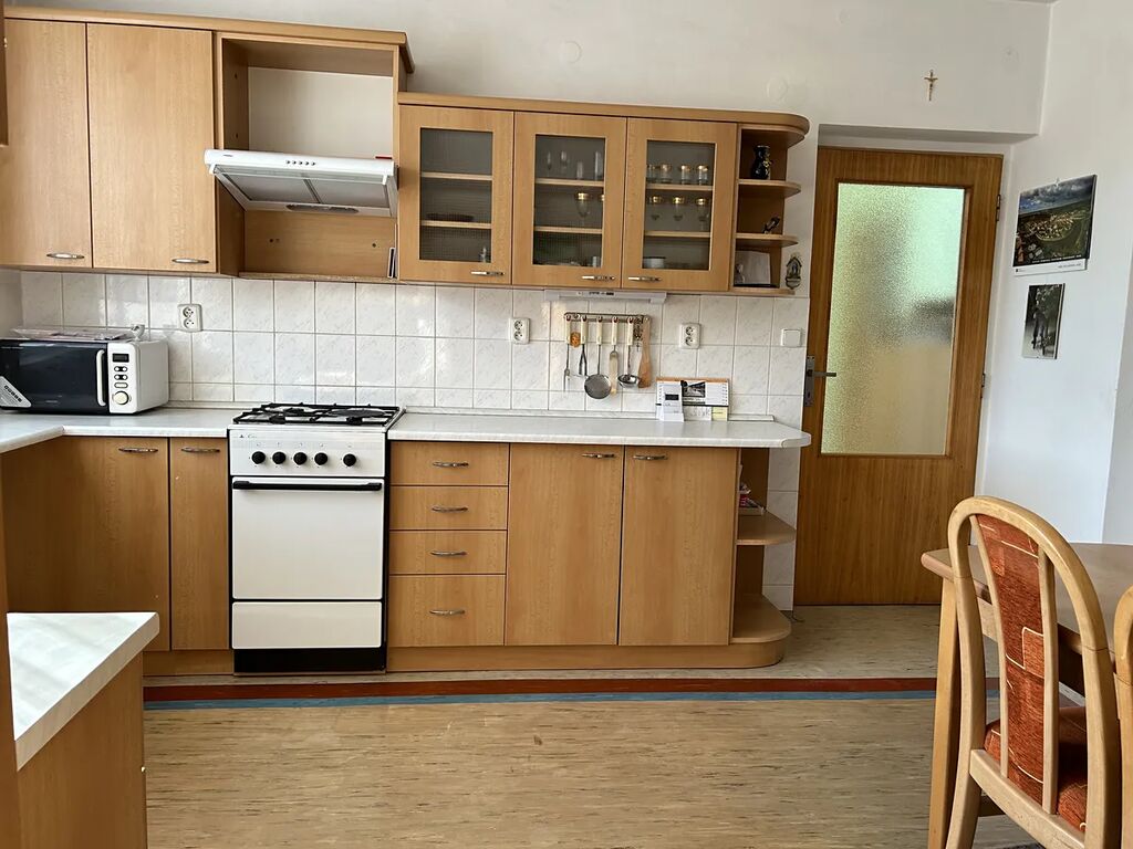 Ve výhradním zastoupení majitele nabízím k prodeji rodinný dům 5+1 (nebo 2+1 a 2+1) ve Veselí nad Moravou. Dům stojí na pozemku 600 m2 a nachází se na velmi lukrativním slunném místě v klidné části města a také v blízkosti centra města. Dům je částečně podsklepený, v 1 NP je prostorná kuchyně s jídelnou a dva velké pokoje, prostorná nová koupelna se sprchovým koutem, bojlerem a místem pro pračku popř. sušičku. Ze vstupní chodby je vchod na wc, do sklepa a do prostorné šatny. Další samostatné wc je v mezipatře. Ve 2 NP jsou 3 velké pokoje ve kterých jsou letos udělány nové omítky. Jeden z pokojů sloužil i jako kuchyně s jídelnou a je z něho i vstup do koupelny se sprchovým koutem, samostatným novým bojlerem a novou pračkou. Tento pokoj může sloužit jako kuchyň nebo ložnice s vlastní koupelnou a šatnou. V tomto podlaží je i vstup na balkon a odtud výstup na rovnou střechu. Vytápění je ústřední plynové. U domu je samostatná garáž a možnost parkovat další auto v průjezdu. Za domem je rovinatá velmi dobře udržovaná zahrada. DOPORUČUJI: krásné klidné bydlení se zahradou s výbornou dostupnosti centra města.