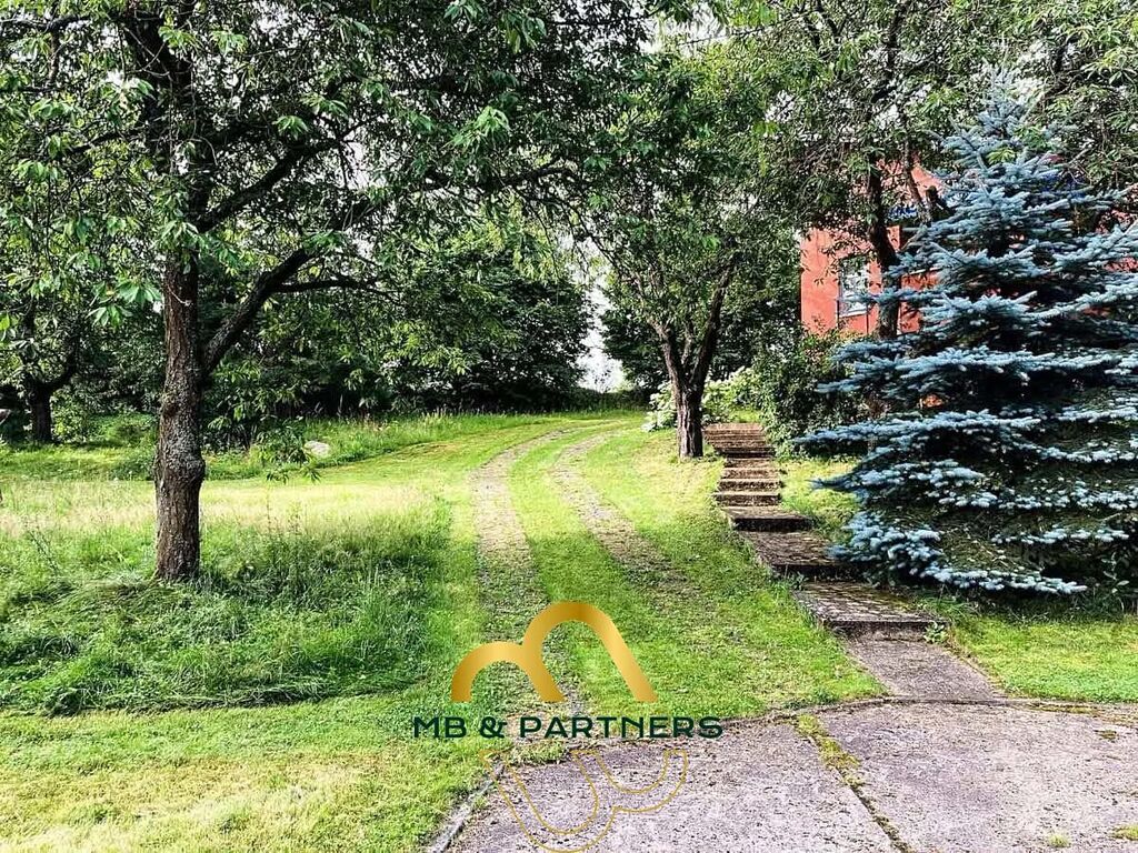 Rozlehlá okrasná zahrada s množstvím nových dřevin, vzrostlých původních stromů, skal, okrasných skalek, loukou, zahradním domkem a mnohými zákoutími vyžaduje jednoduchou údržbu a vzájemnou dohodu s majitelkou.