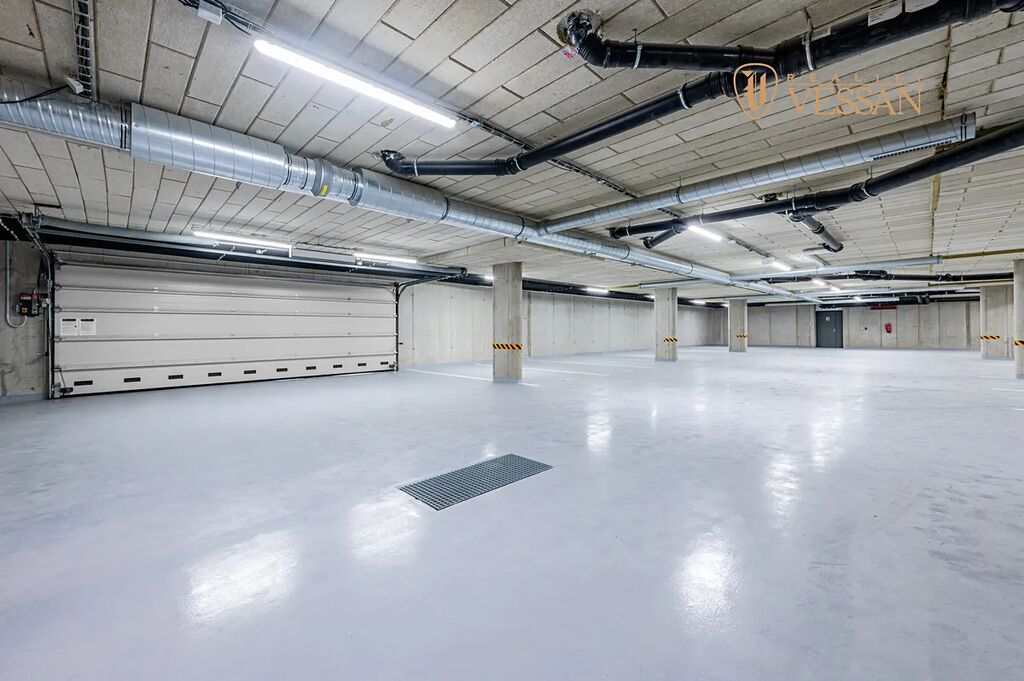 Areál je oplocený a kromě parkovacích stání v domě je několik venkovních parkovacích míst pro návštěvy a místa pro nabíjení elektromobilů.