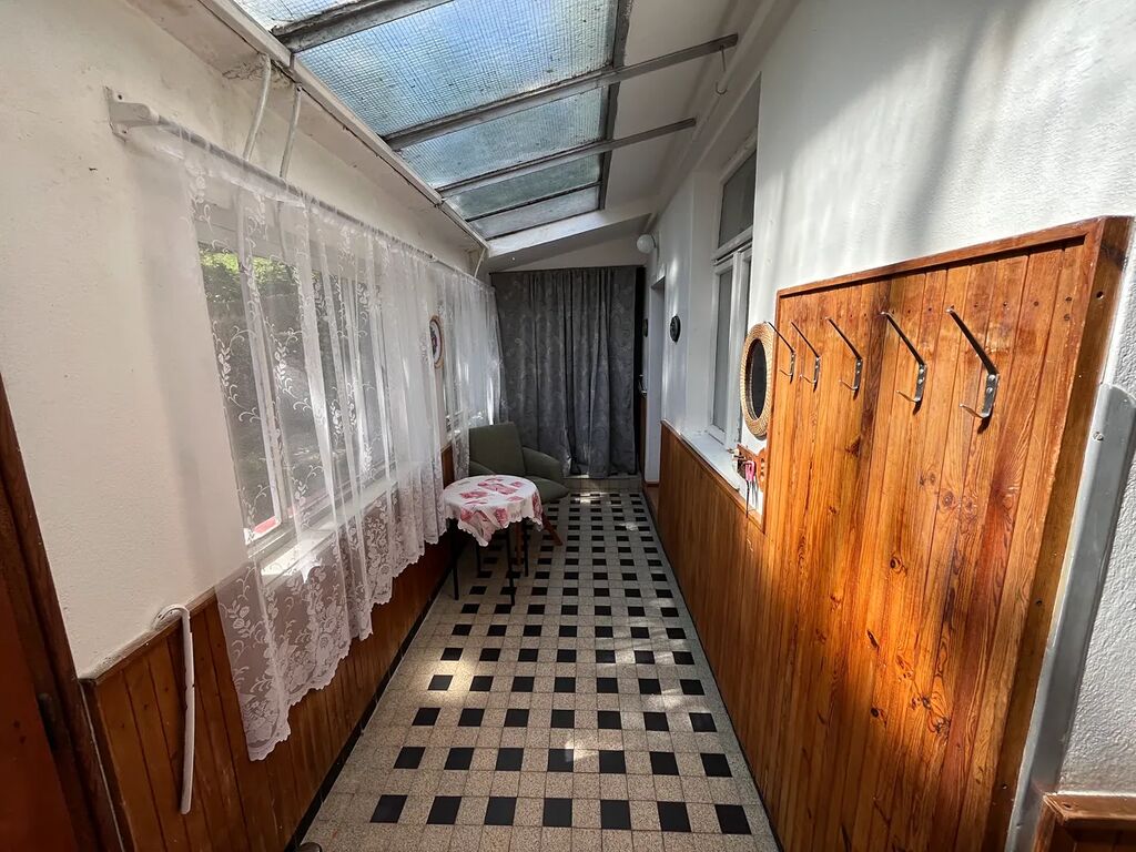 Dispozičně: v přízemí prosklená veranda, samostatná kuchyně s kamny a sporákem, 3 neprůchozí pokoje - obývací pokoj s okny do ulice, menší přízemní pokoj, ložnice v patře, úložná komora na mezipatře, koupelna s vanou a WC. Dům má rovněž sklep. Na dvoře je umístěna garáž a dřevník s úložným prostorem, nevyužitý půdní prostor s dobrou světlou výškou s možností rozšíření o obytné podkroví. Užitková zahrada s trávníkem a několika ovocnými stromy.