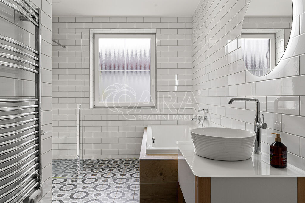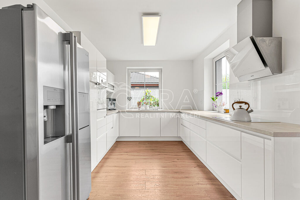 Kvalitní novostavba RD 5+kk, 169 m2, na pozemku 1031 m2 s krásnou zahradou a výhledem do zeleně. Velmi prostorný obývací pokoj 54 m2 s plně vybavenou kuchyní, jídelním koutem a vstupem na terasu. 4 ložnice, koupelna s vanou a sprchovým koutem, 2 x toaleta. Garáž s přímým vstupem do domu, komora, technická místnost, šatna 6 m2, podlahové vytápění. Velká zahrada 822 m2 se závlahovým zařízením a úchvatným výhledem na lesík. Je zde dostatek místa pro bazén, pro rozšíření terasy, popřípadě zahradní domek. Komfortní dům s ideální polohou- tiché a klidné místo s krásným výhledem a soukromím- v rezidenční čtvrti s dobrou občanskou vybaveností- školka, obchod, restaurace či hřiště a v pěší dostupnosti velký Retail park s více než 20 prodejnami. Výborná dostupnost do Prahy, na metro Letňany či Kobylisy pouhých 20 min. Doporučujeme.