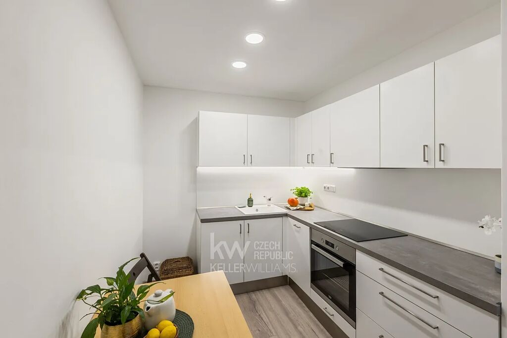 Najdete zde rohovou kuchyňskou linku, plovoucí podlahy, elegantní bílé zárubně dveří a prostorné vestavěné skříně v chodbě i ložnici. Vše bylo provedeno pečlivě a kvalitně.