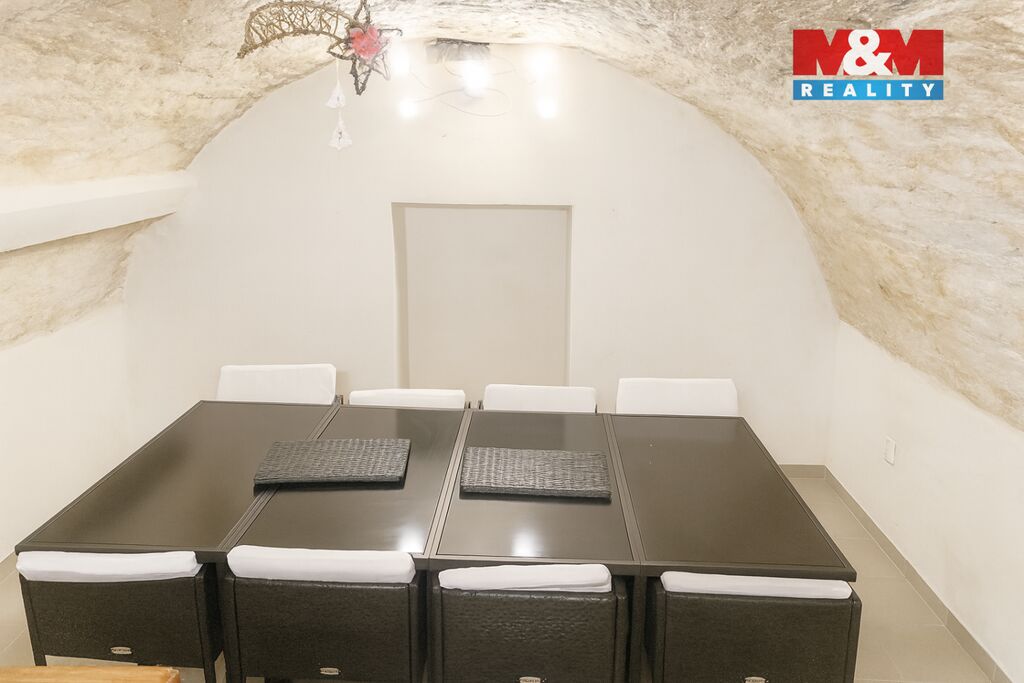 Vytápění celého bytu (i sklepa) je řešeno úspornými stropními infrapanely, které zajišťují rovnoměrné teplo a nízké provozní náklady. K bytu náleží velký vinný sklep o ploše cca 17 m², ideální pro skladování vína nebo jako stylové posezení, a dále zděná kóje o velikosti cca 2 m². Parkování je možné přímo před domem, další veřejné parkovací plochy jsou v blízkosti. Hned vedle domu se nachází obchod s potravinami.