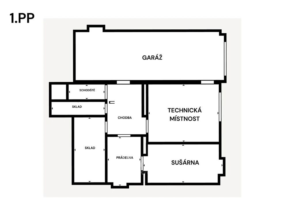 SUTERÉN: garáž, kotelna, sklad, prádelna, sušárna – ideální pro kutily, sběratele, domácí wellness anebo vybudování dalšího bytu, kanceláře nebo ateliéru