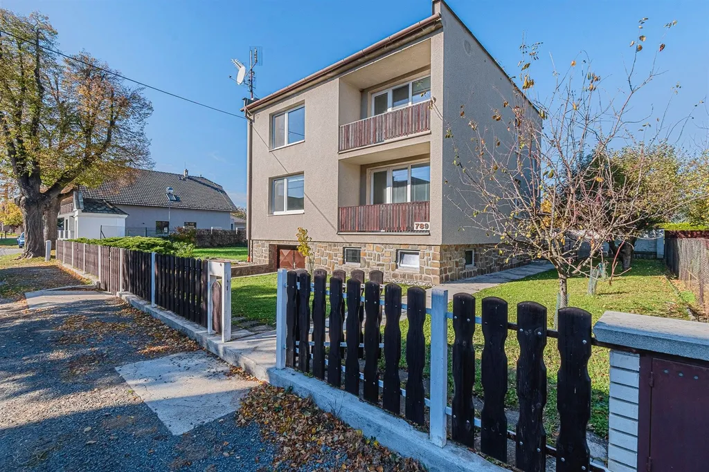 Tento zděný dům byl dispozičně koncipován jako dvougenerační, kdy v každém ze dvou (2) nadzemních podlaží se nachází byt s dispozicí 2+1, nicméně dům byl doposud využíván jako bydlení jednogenereční, a to s dispozicí 5+1. Dům stojí na vlastním oploceném pozemku, kolem dokola jej obklopuje zahrada a funkční zpevněné plochy. Zde najdeme příjemné záležitosti, jako např. polozapuštěný oválný bazén, velmi pěkné kryté posezení pod zastřešenou pergolou (má zavedenou elektřinu i vlastní sklepení), dále vymezený prostor v rohu pozemku pro případné zbudování samostatné další garáže.