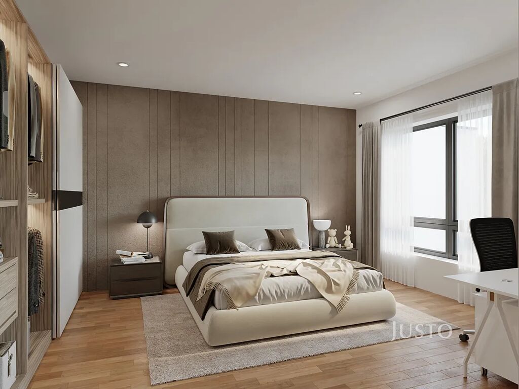 Dispozice 4+kk je řešena velmi prakticky s důrazem na soukromí a pohodlí: