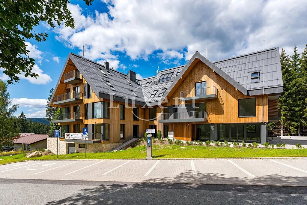 Harrachov Peaks je luxusní projekt vystavěný z kvalitních přírodních materiálů s wellness se saunou a vířivkou a plně vybaveným fitness. Představuje pouze 16 moderních apartmánů a nabízí tak komorní atmosféru v domě pro jejich majitele. Svým konceptem uspokojí zájemce jako o druhé bydlení v Krkonoších, tak investory se záměrem zajistit své finance nebo praktikovat výnosové krátkodobé pronájmy. Součástí nabídky je i správa apartmánů včetně pronájmů. Projekt HARRACHOV PEAKS nabízí vysoký standard vybavení – dubové podlahy, dřevěné terasy, velkoformátové obklady v koupelnách a na chodbách a další. Vytápění probíhá tepelnými čerpadly a je rozvedeno podlahovým topným systémem. V bytě je rekuperace. Energetická třída je velmi úspornou B. Kolaudace úspěšně proběhla a nastěhování je možné ihned.