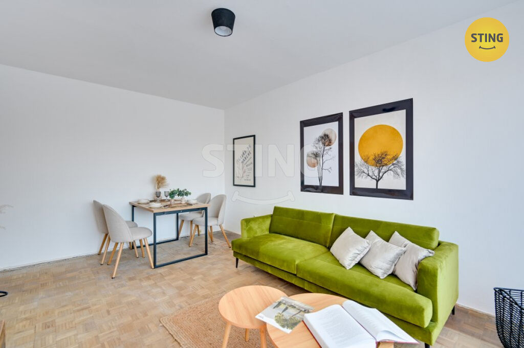 Byt se nachází v udržovaném stavu, což dává skvělou příležitost k případné  úpravě dle vlastních představ. Dispozice je velmi praktická – prostorná vstupní chodba s komorou, samostatná kuchyň, obývací pokoj se vstupem na balkon, ložnice (tyto pokoje jsou orientovány do zeleně za domem), koupelna se sprchovým koutem a oddělené WC.