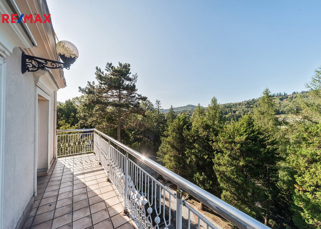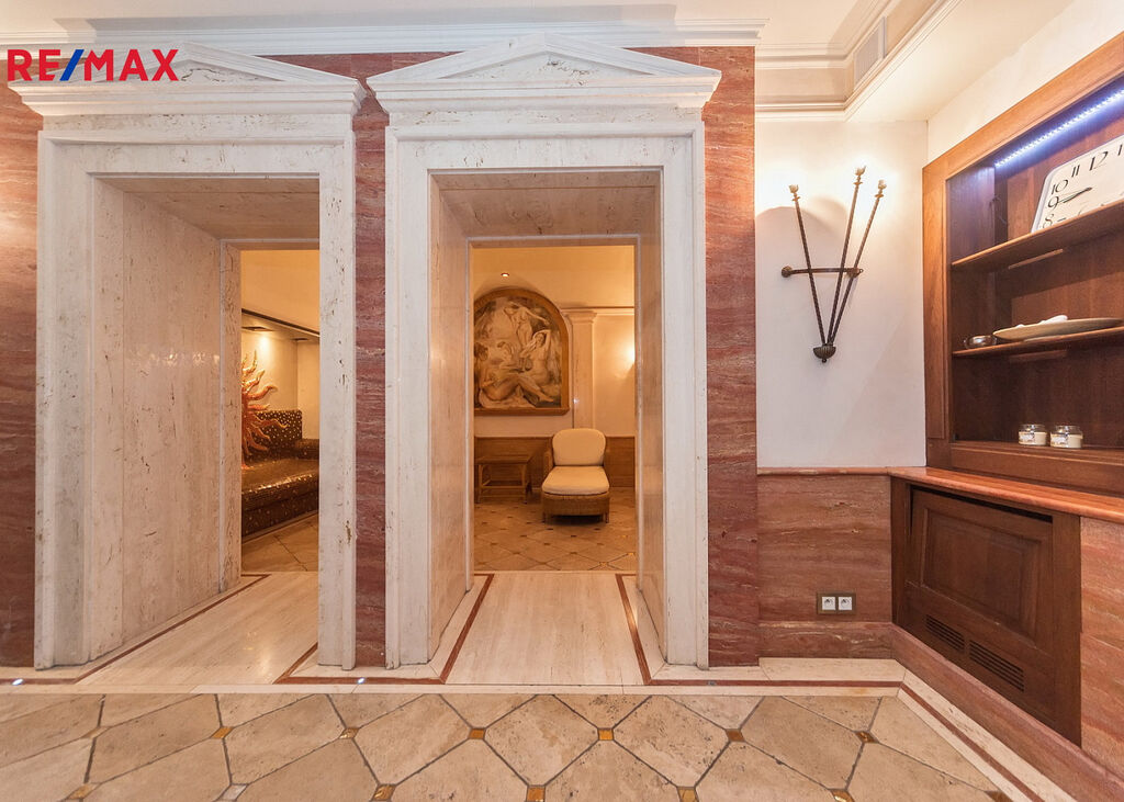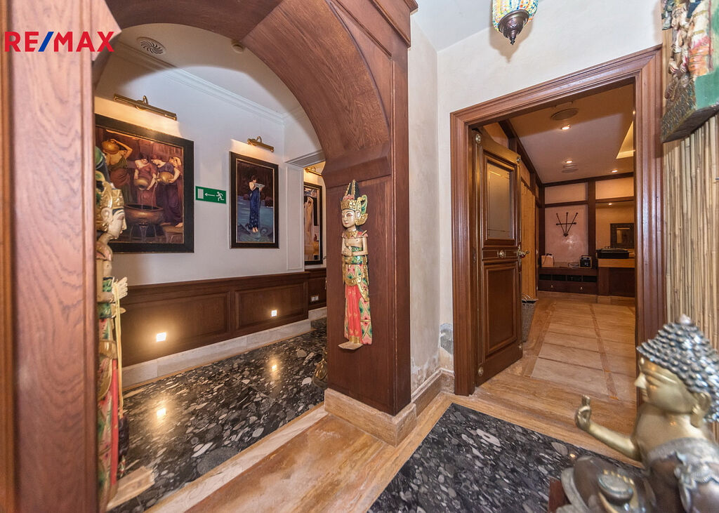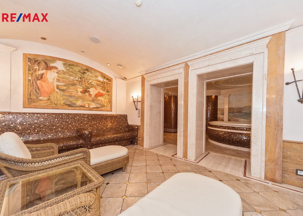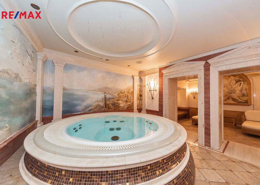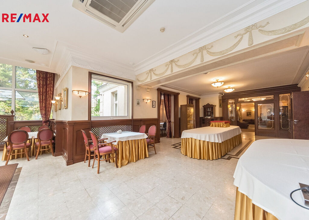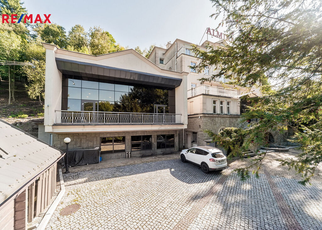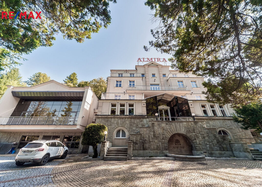 Čtyřpodlažní hotelová budova o rozloze cca 1 373,29 m² má 19 apartmánů a 54 lůžek. Standard je nejvyšší třídy: mramor, onyx, travertin, exotické dřevo, sklo, křišťál. Exkluzivní SPA: sauny, jacuzzi, masážní kabiny, koupelové pokoje. Restaurace s profesionálním kuchyňským zázemím. Druhá restaurace ve stavu „hrubé stavby“, k vlastní aranžaci. Konferenčně-bálový sál, prosklená veranda-kavárna, bar, elegantní lobby. Terasa s italskou zahradou a zralou vegetací. 30 parkovacích míst s možností realizace podzemního parkoviště. Na pozemku se nachází také rodinný dům o rozloze cca 239,17 m² s kompletním technickým zázemím a krby.