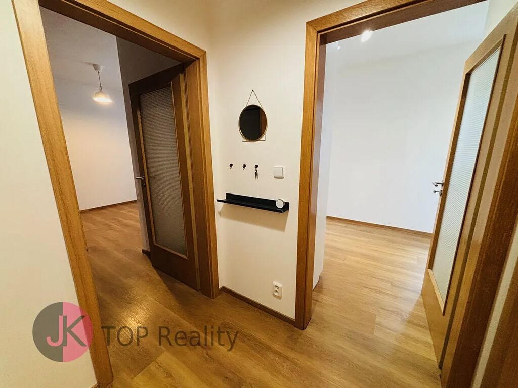 Na podlaze plovoucí lamino a dlažba, dřevěná eurookna okna v celém bytě. Orientace oken je na J. Dále k bytu náleží sklep 3 m2 v přízemí domu a garážové stání v ceně 2 500, Kč/měsíčně, které je součástí pronájmu bytu.