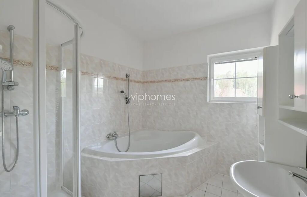 V patře se nachází hlavní ložnice s vlastní šatnou/koupelnou/toaletou, další 3 ložnice, koupelna a toaleta. Jedna ložnice je s balkonem. V suterénu (čistá užitná plocha 109 m2) garáž o ploše 63 m2 pro 3 automobily, dále prádelna, skladovací místnost a toaleta. V patře se nachází čtyři ložnice, dvě koupelny a toaleta.