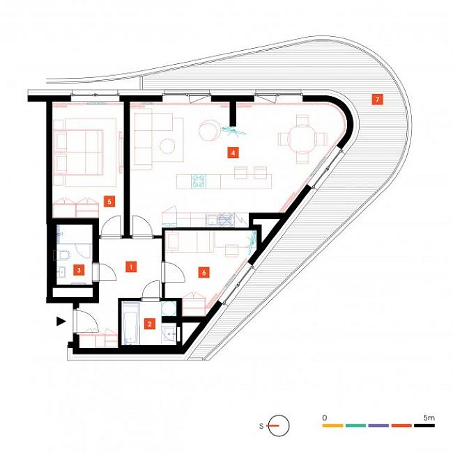 Velmi pěkný, prostorný a slunný byt č. 508 o dispozici 3+kk s obloukovou terasou a výhledem z 5.patra moderní budovy. Byt nabízí mimo jiné dvě koupelny se sprchou i vanou. V obou koupelnách Vás jistě potěší příjemné podlahové vytápění.
