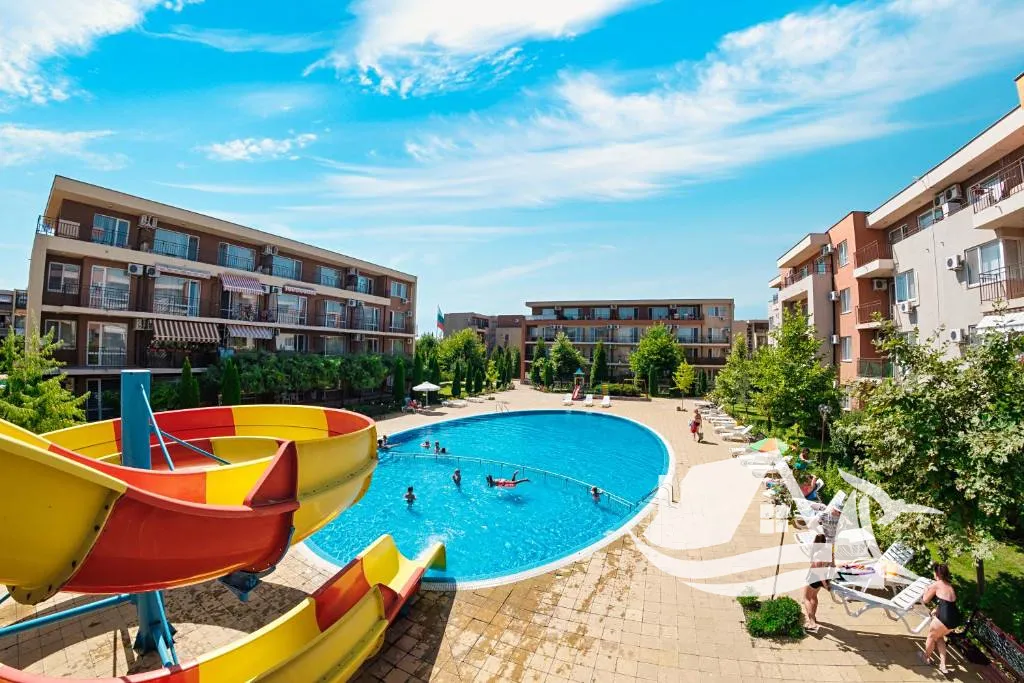 Komplex se nachází jen pár kroků od velkého aquaparku a pouhých 15 minut chůze od pláže. Centrum Slunečného pobřeží je vzdálené jen 500 metrů a v okolí najdete supermarket, trh se zeleninou a spoustu zábavy pro děti i dospělé.
