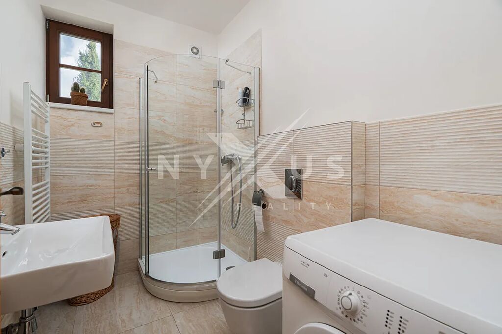 Plynové vytápění je kombinováno s elektrickými vyhřívanými podlahami a krbem. Dřevěná okna, dřevěné plovoucí podlahy, v koupelnách pak na podlahách dlažba. Klid bydlení zajistí zabezpečovací systém Paradox.