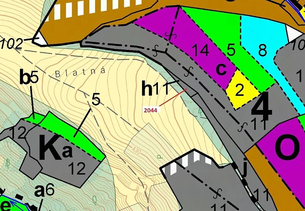 Lesní pozemek o výměře 471 m2, parcelní číslo 2044, podíl 1/1, katastrální území Slopné, obec Slopné, obec s rozšířenou působností Luhačovice, okres Zlín, Zlínský kraj. Po těžbě.