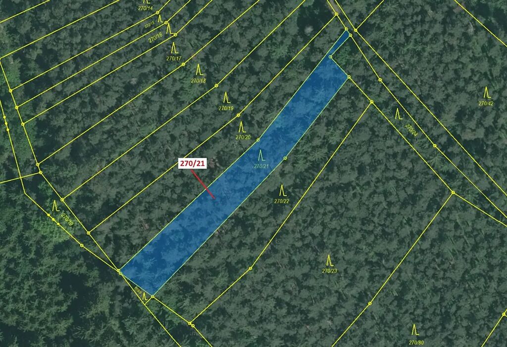 Lesní pozemek o výměře 1537 m2, parcelní číslo 270/21, podíl 1/1, katastrální území Milavče, obec Milavče, obec s rozšířenou působností Domažlice, okres Domažlice, Plzeňský kraj. Po těžbě.